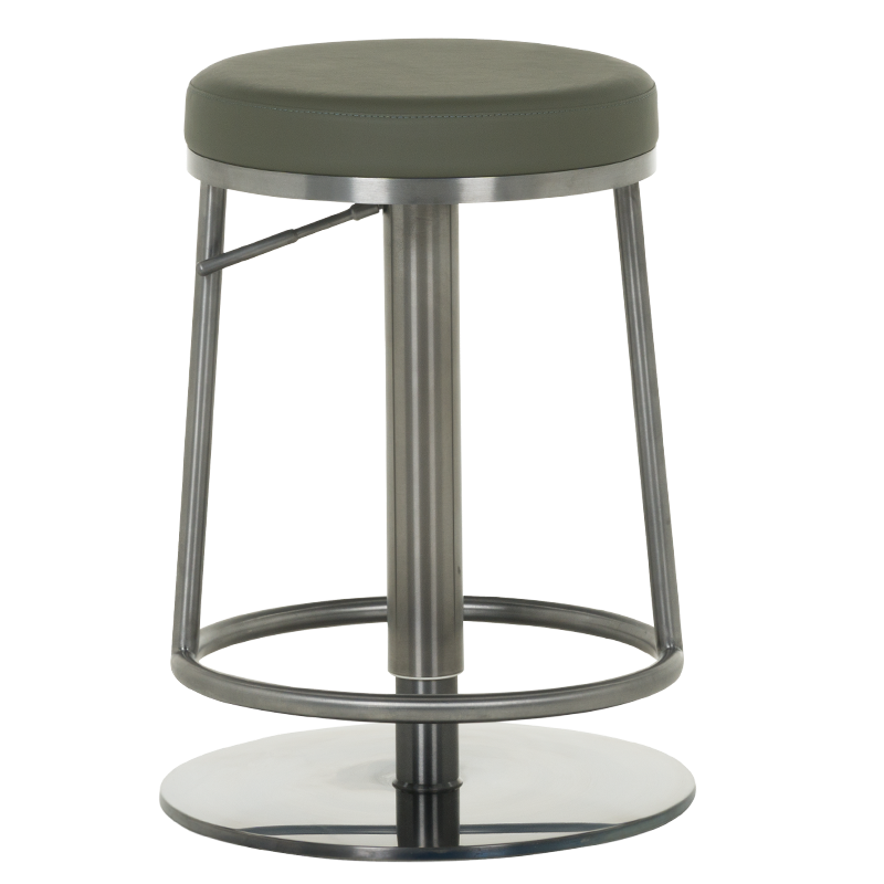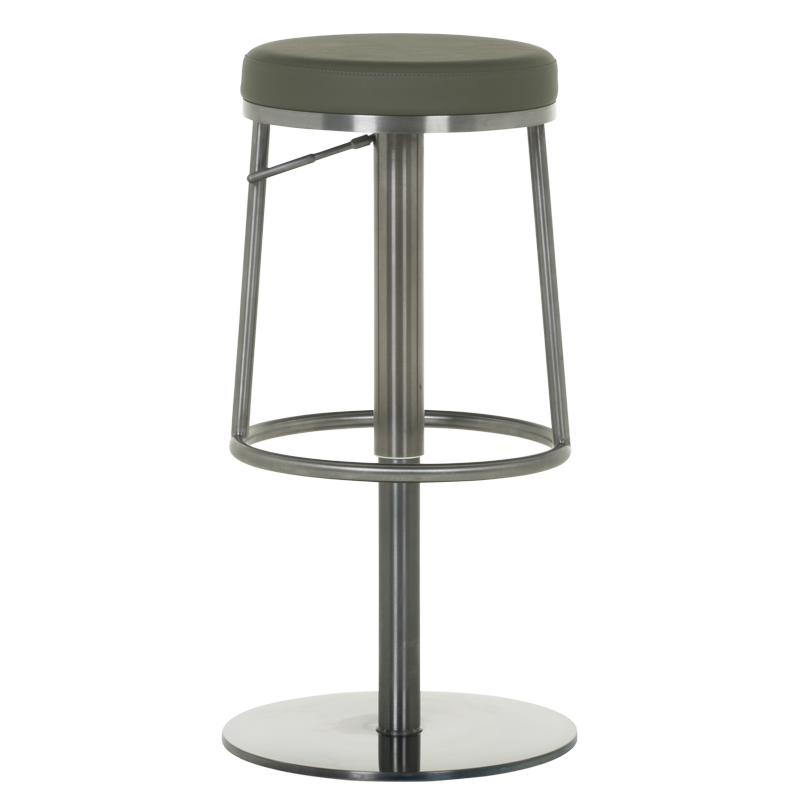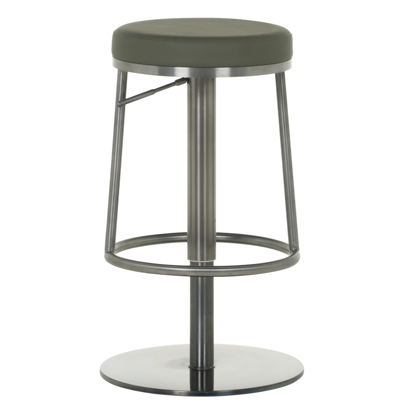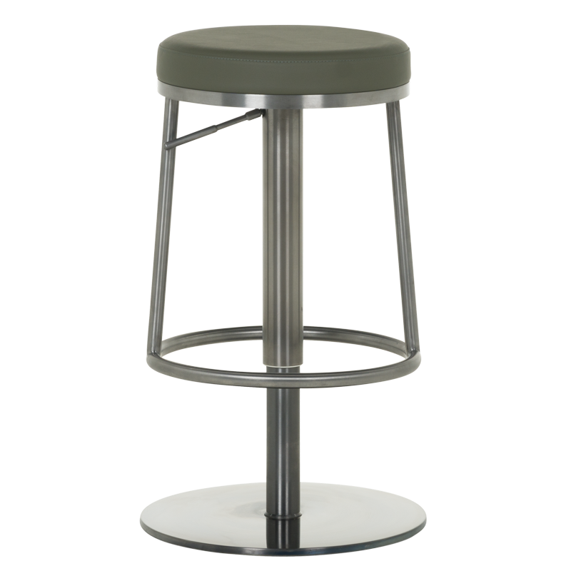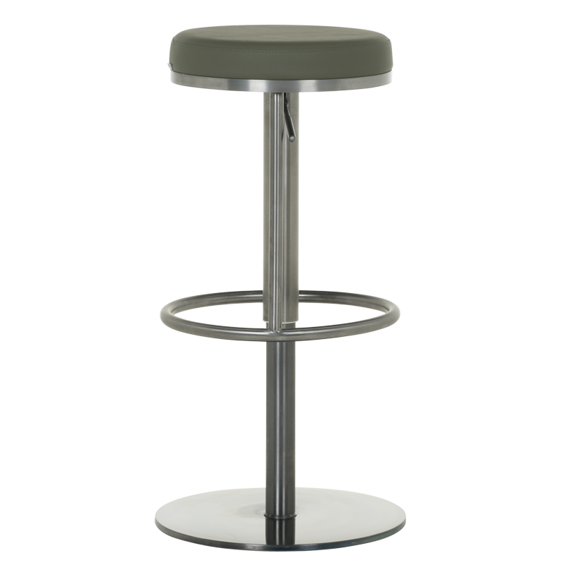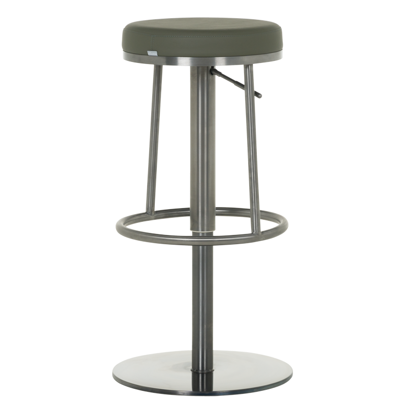 Бар столът е символ на лукс и изтънченост, съчетавайки модерен дизайн с максимален комфорт. Тапициран е с висококачествена еко кожа, която предлага изключителна мекота и стил, придавайки на интериора усещане за елегантност и внимание към детайла. Основата е изработена от иноксова стомана с луксозно полирано покритие и графитен финиш, което осигурява не само издръжливост, но и впечатляващо визуално присъствие.