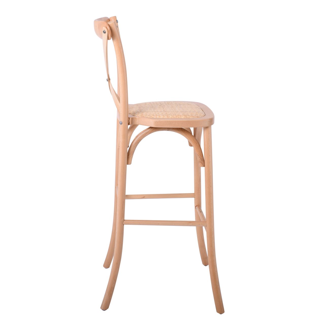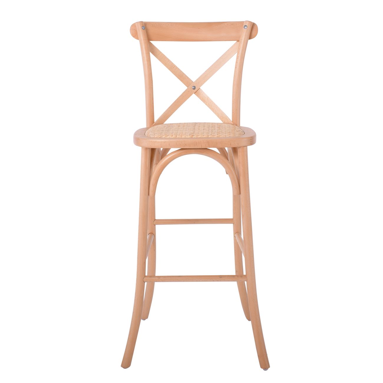 Прекрасният натурален цвят придава топлота и хармония на интериора, идеално комбинирайки се с нюансите на дървото. Седалката, изработена от естествени материали, предлага удобство и комфорт, дори при продължително ползване. Кръстосаните елементи на облегалката добавят нотка на изисканост, която ще привлече вниманието във всеки съвременен дом или заведение.