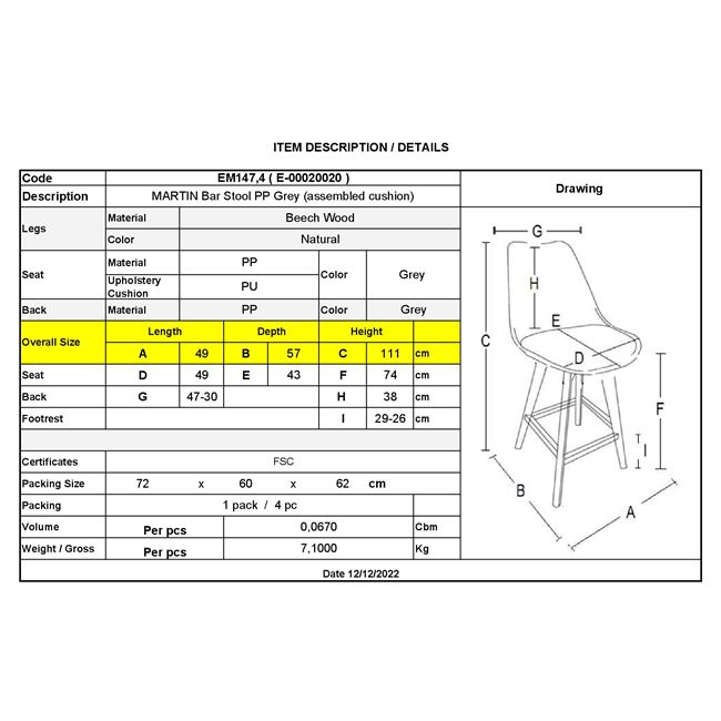 Изчистените линии и плавният силует на този продукт го правят изключително подходящ за различни дизайнерски решения. Прекрасно се вписва в интериори с модерен, скандинавски или индустриален стил. Височината на стола е внимателно подбрана, за да предостави идеалния комфорт при използване в барове, заведения или кухни с високи плотове.