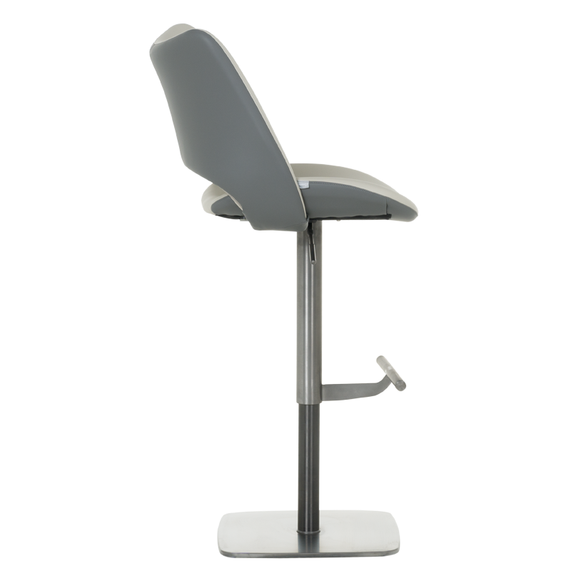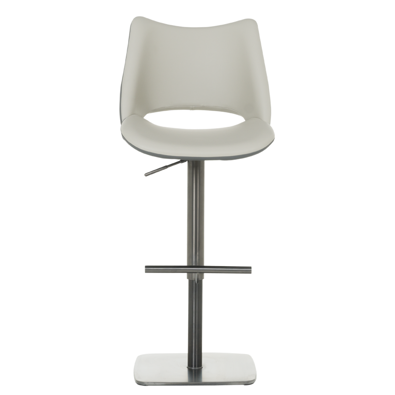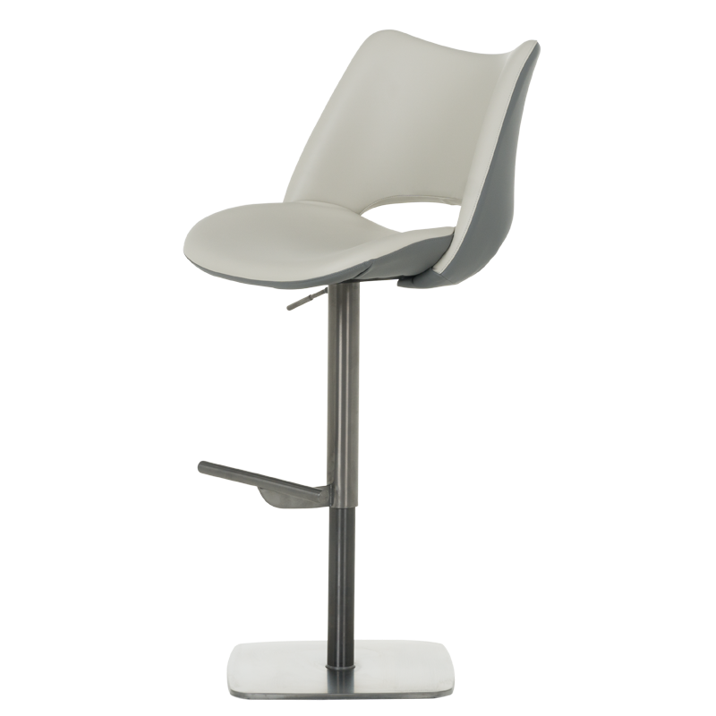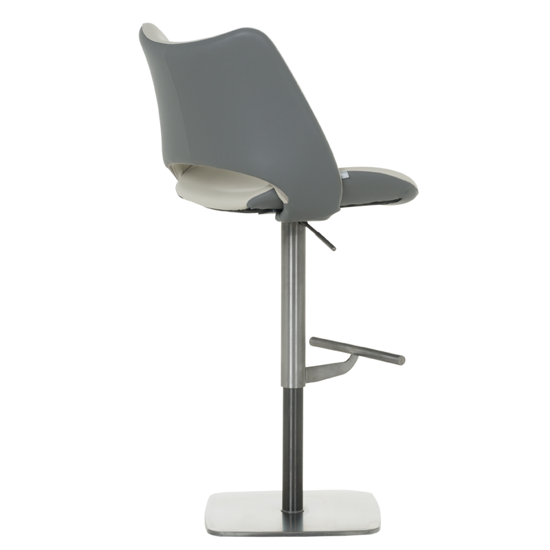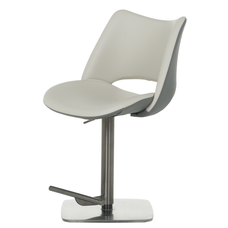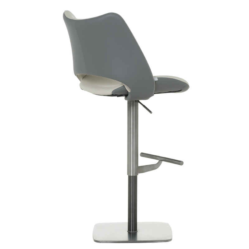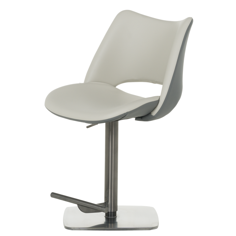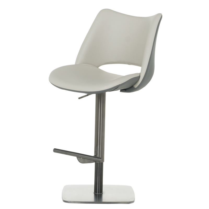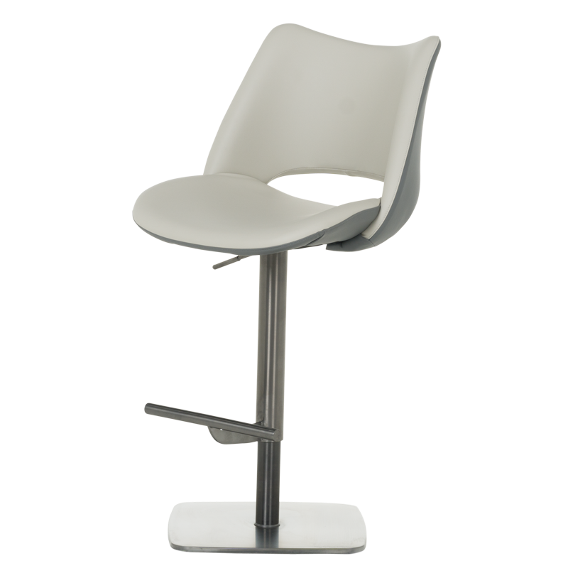 Бар столът впечатлява с изчистен и модерен дизайн, който съчетава функционалност и стил. Светлосивата еко кожа придава изтънченост и съвременно излъчване, което го прави подходящ за всяко жилищно или търговско пространство.