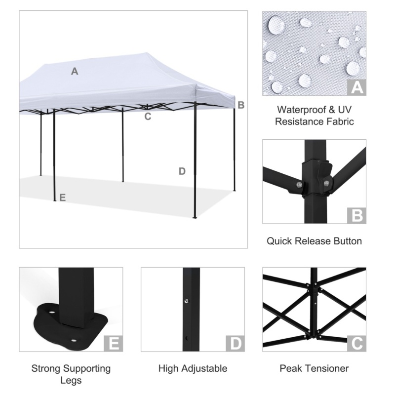 Този продукт не само че подобрява естетическия вид на всяко събитие, но и осигурява комфорт и безопасност за вашите гости. Превърнете вашите събирания в незабравимо изживяване с този стилен и практичен павилион, който предлага най-доброто от света на външните мебели.