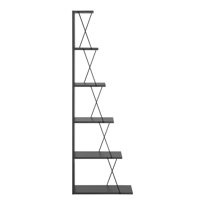 Стенният рафт е изработен от висококачествени материали, което гарантира дълготрайност и стабилност. Модерният му облик се вписва перфектно във всяко помещение, предлагайки както естетика, така и практическо приложение. Черният цвят и стилната конструкция правят този рафт лесен за комбиниране с различен интериорен стил. Неговите няколко нива предоставят достатъчно пространство за организиране на книги, декоративни елементи или офис принадлежности.