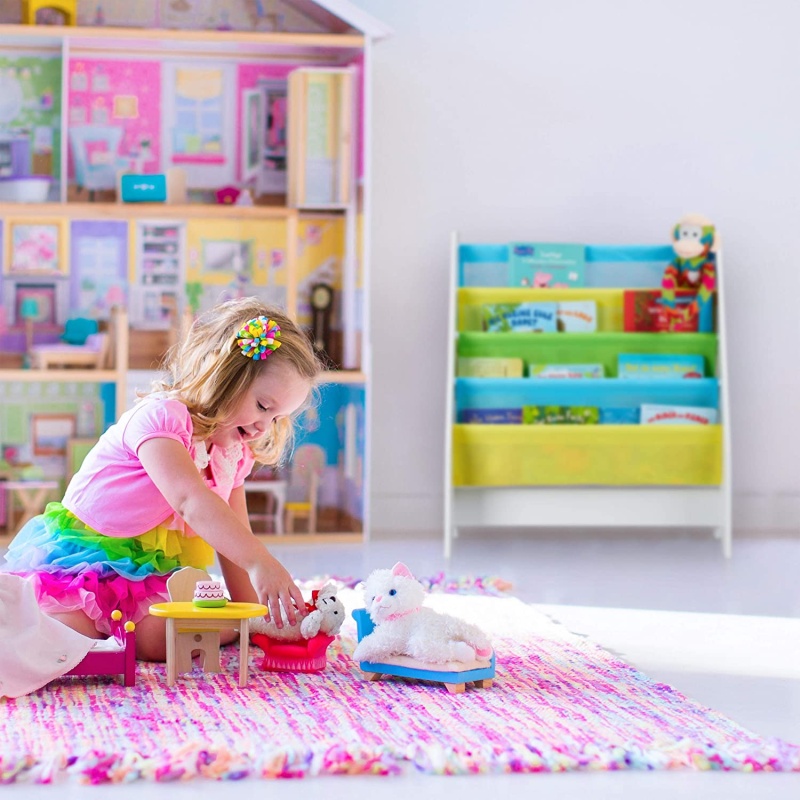 Тази практична Детска етажерка с 4 отделения за книги Ви помага да предадете радостта от четенето на децата.
