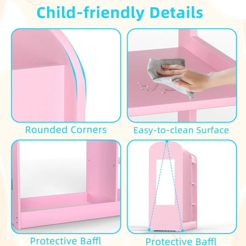 • Осигурете на вашето дете стилно и функционално решение за съхранение с Детска стойка за дрехи с огледало GINGER HOME. Този розов Детски гардероб е идеален за организиране на детските дрехи, аксесоари и обувки, като добавя елегантен акцент към всяка Детска стая.