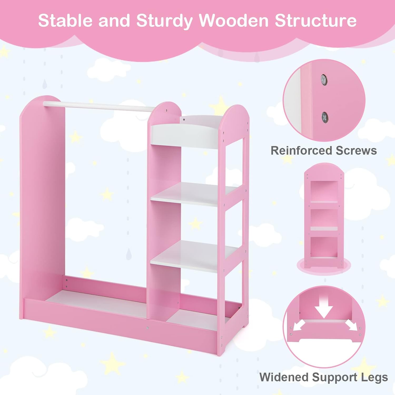 • Перфектен размер за деца: Проектирана с подходящи размери за деца, Детската закачалка за дрехи осигурява удобство и практичност. Този център за обличане е специално проектиран за деца над 2 години. Със своята разумна височина от 100 см и отворен дизайн, детският гардероб позволява на децата удобно да съхраняват или изваждат дрехите си.