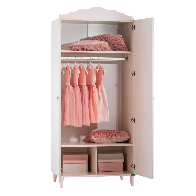 гардероб е елегантно и практично решение за подредено и стилно детско пространство. му размер го прави подходящ както за по-малки стаи, така и като допълнение към по-голямо обзавеждане от същата серия. предлага широко място за закачалки със сензорно LED осветление, регулируеми рафтове с товароносимост до 25 кг и врати със спирачка за плавно и безшумно затваряне. ABS дръжките са удобни и издръжливи, а високите ABS крачета (12 см) позволяват почистване с робот прахосмукачка. е от 18 мм сертифицирано за безопасност – идеален избор за детска среда. информация за размерите и характеристиките на модела ще намерите в таблицата в таб/поле информация’.