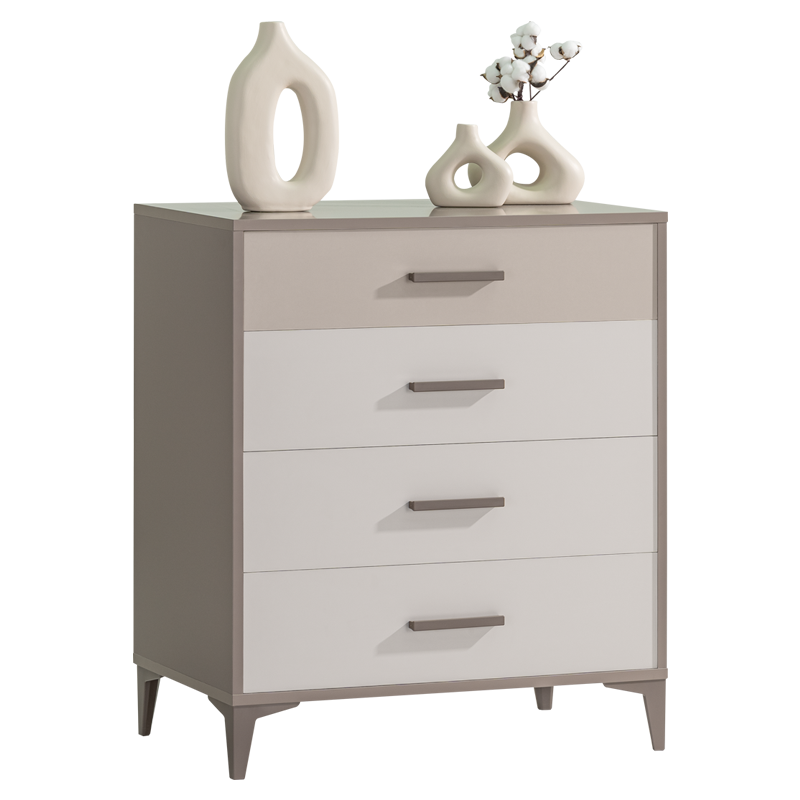 Представяме ви елегантен детски скрин, идеален за всяко модерно детско помещение. Отличаващ се с изчистени линии и съвременни контури, този скрин съчетава функционалност и изискан стил. Продуктът предлага четири просторни чекмеджета, които осигуряват достатъчно пространство за съхранение на дрехи, играчки и аксесоари, като същевременно поддържа стаята добре организирана.