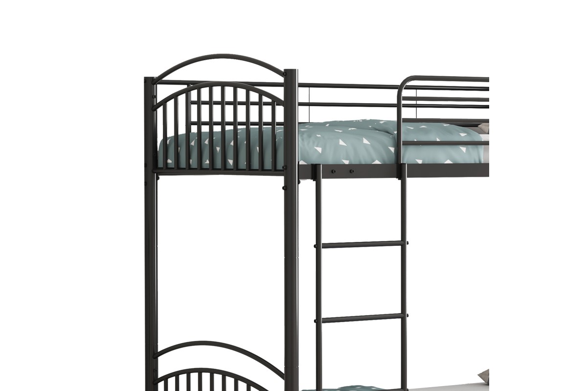 Този елегантен и модерен двуетажен креват е създаден, за да внесе стил и функционалност във всяка детска стая или гостна. В изчистен и стилен черен цвят, този продукт се вписва перфектно в съвременния интериор, придавайки му съвременен и изискан вид.