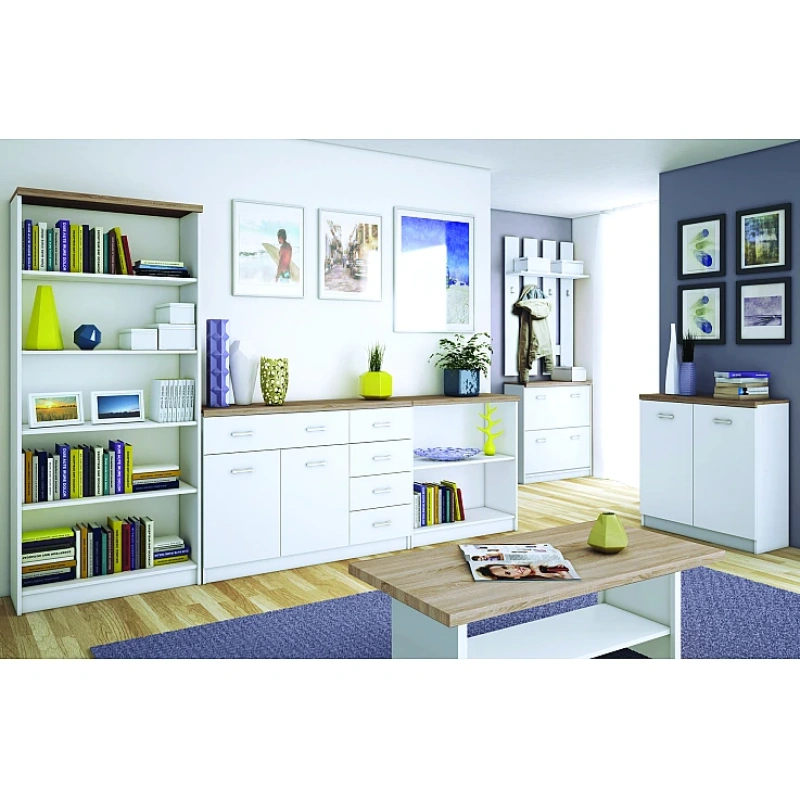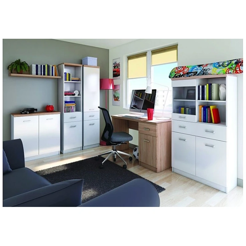 а в долната си част има и просторно чекмедже!Размери:широчина: 60 / дълбочина: 33 / височина: 183 см.Използвани материали:16мм ПДЧИзползвани цветове:бялдъб сонома