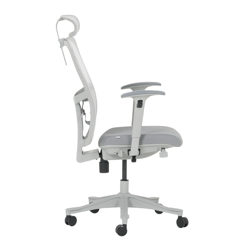 Изключителен офис стол, проектиран с внимание към детайлите и комфорт. Със sleek, съвременен дизайн, той е изработен от висококачествени материали, включително дишаща мрежа, която осигурява максимален комфорт и циркулация на въздуха дори при продължителна употреба. Основният цветен нюанс е елегантен светло сив, който перфектно се вписва в съвременната офис среда, добавяйки нотка стил и професионализъм.