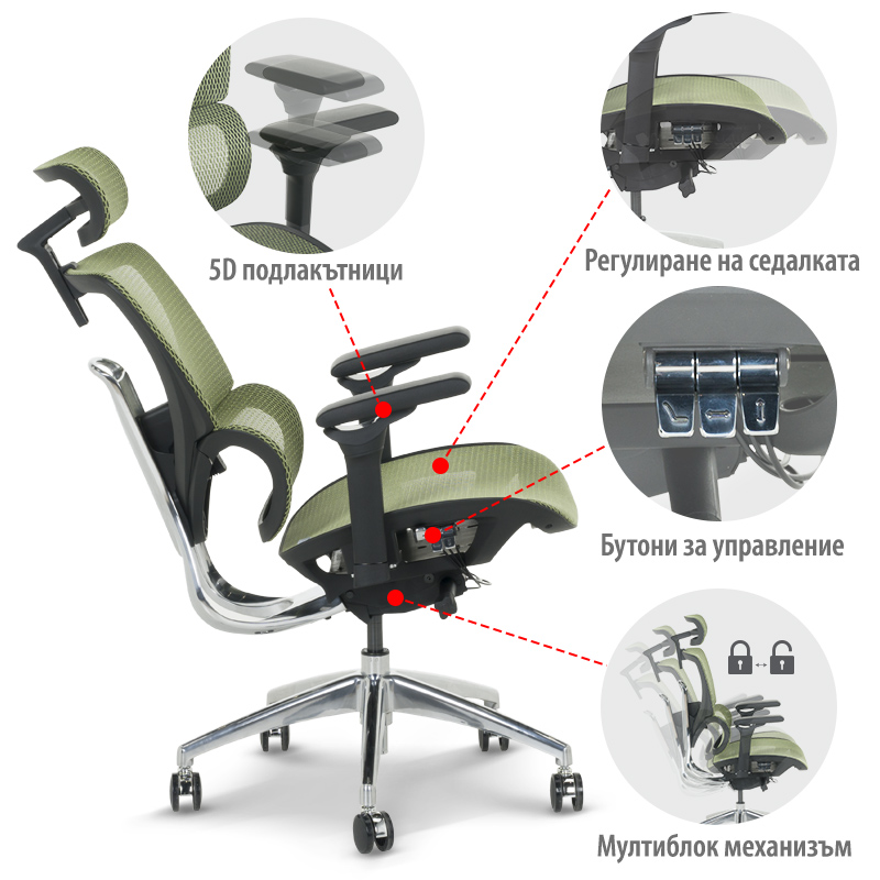 Ергономичен стол – зелен