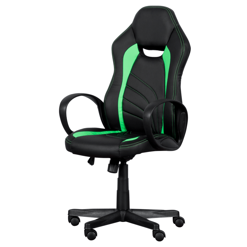Материалът на седалката и облегалката е висококачествена еко кожа, която е лесна за поддръжка и добавя луксозен завършек на дизайна. Комбинацията от черни и зелени акценти придава модернистичен и динамичен вид, който ще направи впечатление във всяко помещение.