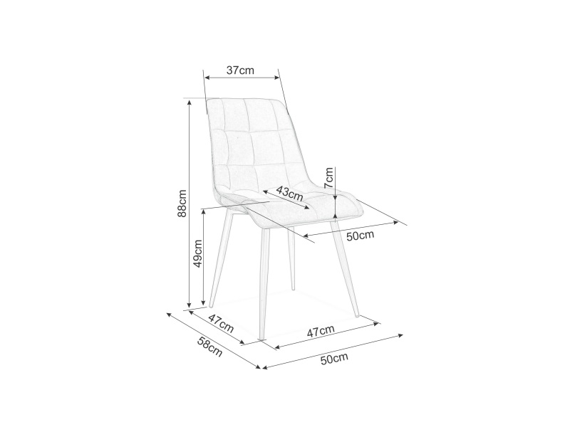 – ширина 47 см, – дълбочина 41 см, – височина 87 см, – седална височина 50 см,