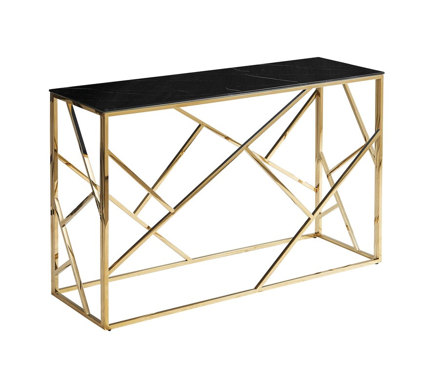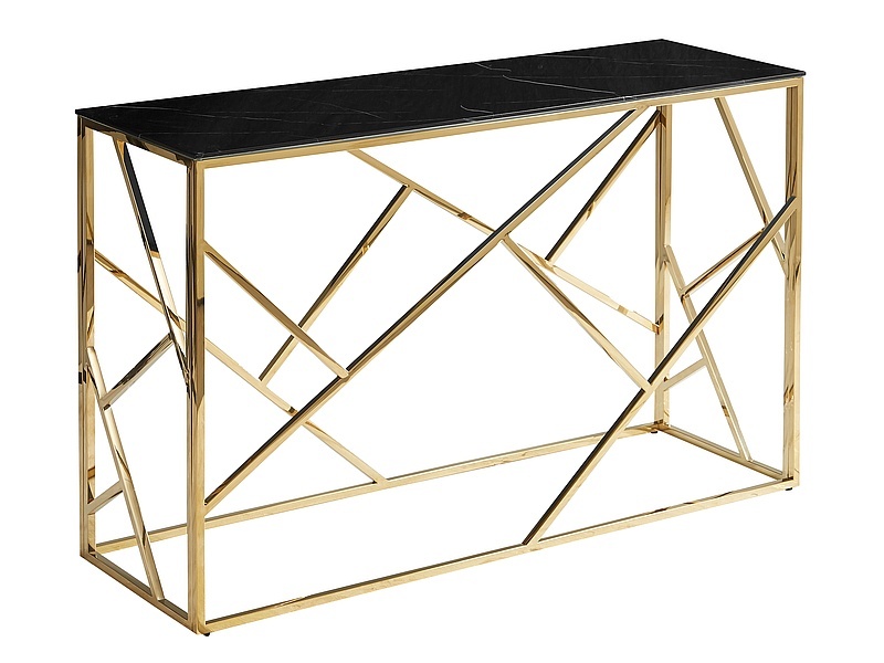 Конзола маса – най -добрият избор за всички любители на добрия стил. Върхът му е направен от закалено стъкло в оптиката на мрамора, а краката от неръждаема стомана се оцветяват до златисто кафяво. Той перфектно ще изпълни своите функции в хола, коридора или спалнята – също като тоалетка. Можете да поставите това, което искате, а неговият интересен, необичаен и много луксозен външен вид ще обогати всяка аранжировка.