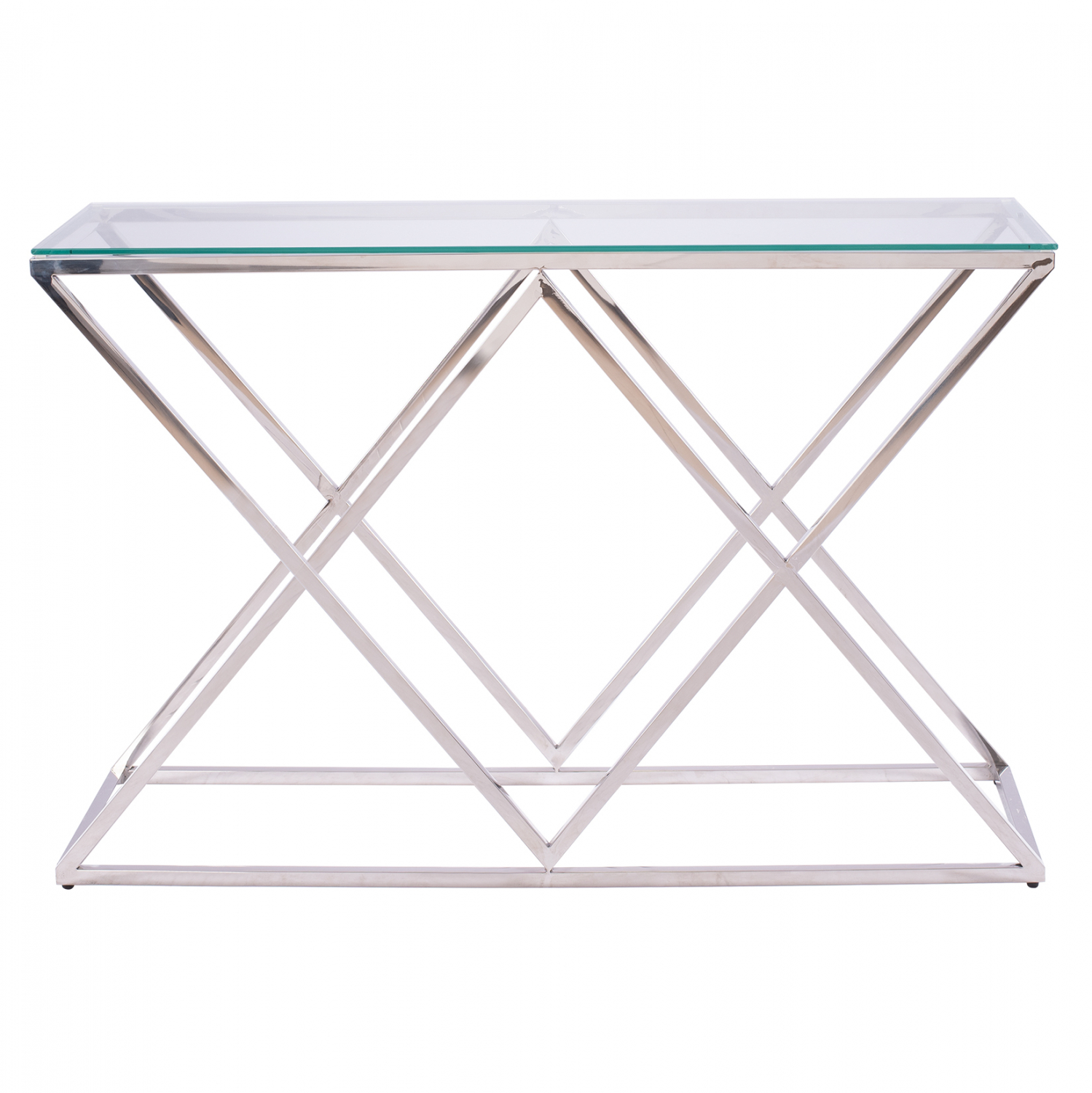 Тази елегантна конзолна маса ще внесе стил и съвременна визия във вашия дом. Отличаваща се с модерен и шикозен дизайн, тя ще бъде перфектното допълнение към вашия вход или хол. Стилният метален корпус и прозрачният плот от закалено стъкло придават на този продукт впечатляваща лекота и същевременно здравина. Дали като функционален елемент или акцент в интериора, тази конзолна маса ще привлече всички погледи и ще стане централна точка в пространството.