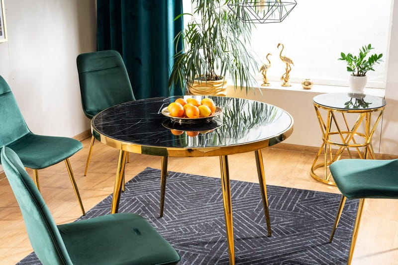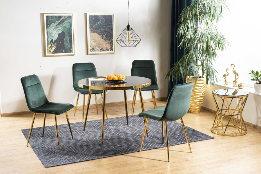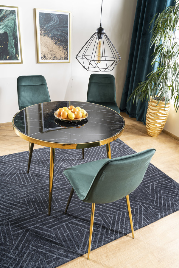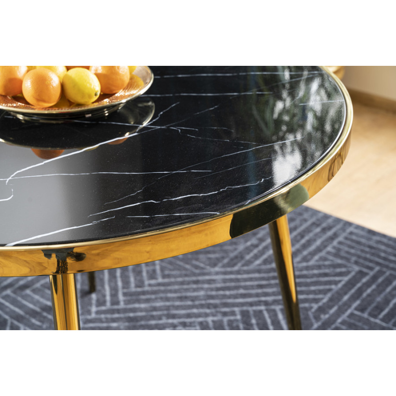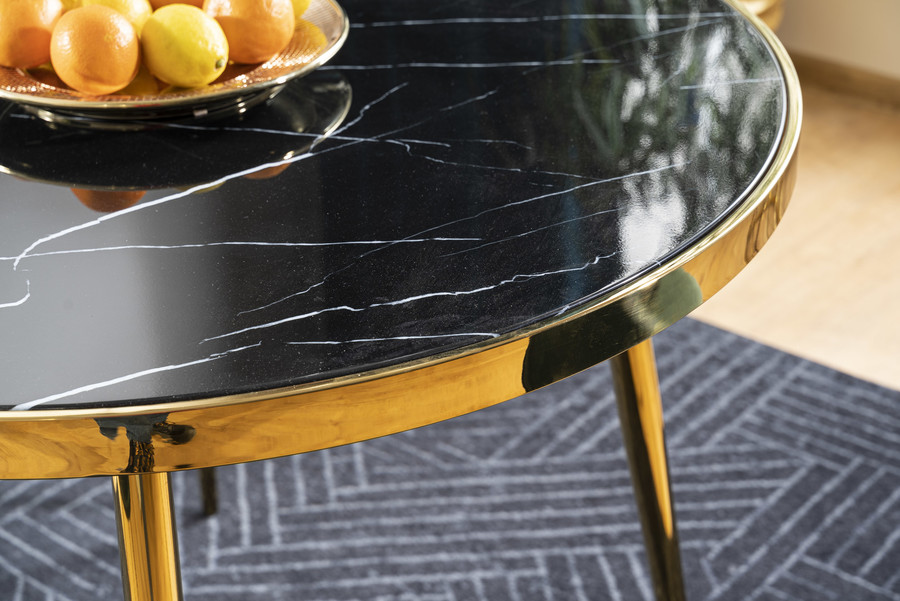 Кръгла маса 100 см – ефект черен мрамор/злато