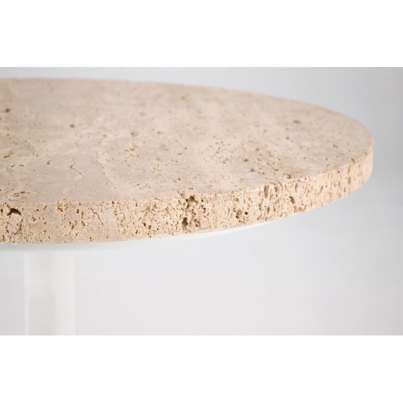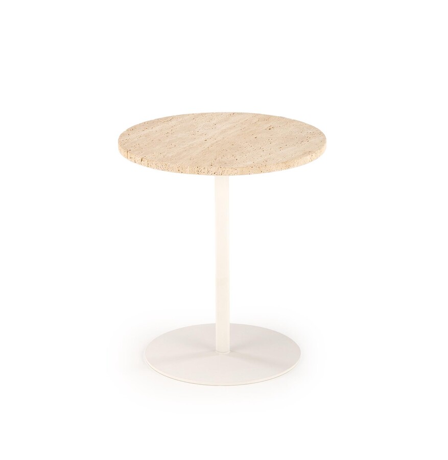 Кръгла маса TRAVERSO S – травертин/бяло
