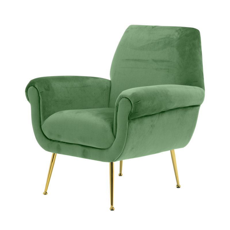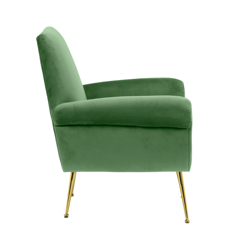 Материалът на тапицерията е висококачествена мека тъкан, която допълва изисканата зелена тоналност и предлага изключителна издръжливост и лесна поддръжка. Здравият метален каркас, завършен със златисти крака, придава стабилност и същевременно несравнима елегантност.