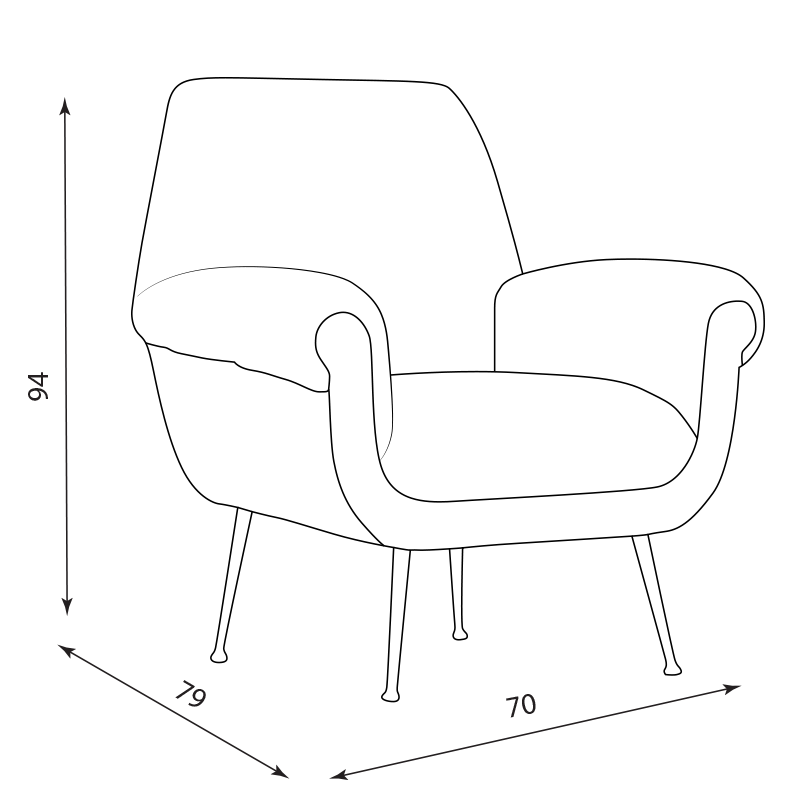 Креслото съчетава първокласна изработка и елегантен дизайн с ретро нотки. То носи комфорт и изискан стил на своя собственик и впечатлява всеки, който го види със своите изящни форми.