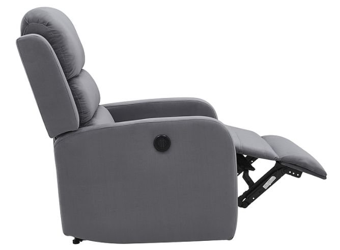 Релакс кресло – Сгъваемият стол е функционална мебел за хола, създадени специално за любителите на релаксацията у дома. Тази ергономична седалка е оборудвана със система за електрическо управление, която осигурява на потребителите максимално удобство с минимални усилия. Функцията за релаксация на фотьойла е, че той има автоматичен механизъм за разгъване до лъжево или реципрочно положение. Работата на тези мебели е много проста и интуитивна, тъй като е достатъчно да натиснете бутона въз основа на това, за да можете да коригирате настройките към индивидуалните нужди. Фреслото беше тапицирано с мека кадифена тъкан в нюанс на сиво, което перфектно се вписва в модерни аранжировки. Ръководството има 3 ергономични зони, гарантирайки комфорт и укрепване на гръбначния стълб при седене или лежи. В долната част на краката има специален раздел, стабилизиращ телета и крака. Основата на стола е стабилна метална рамка. Моделът се предлага и други опции за цвят – бежово и зелено.
