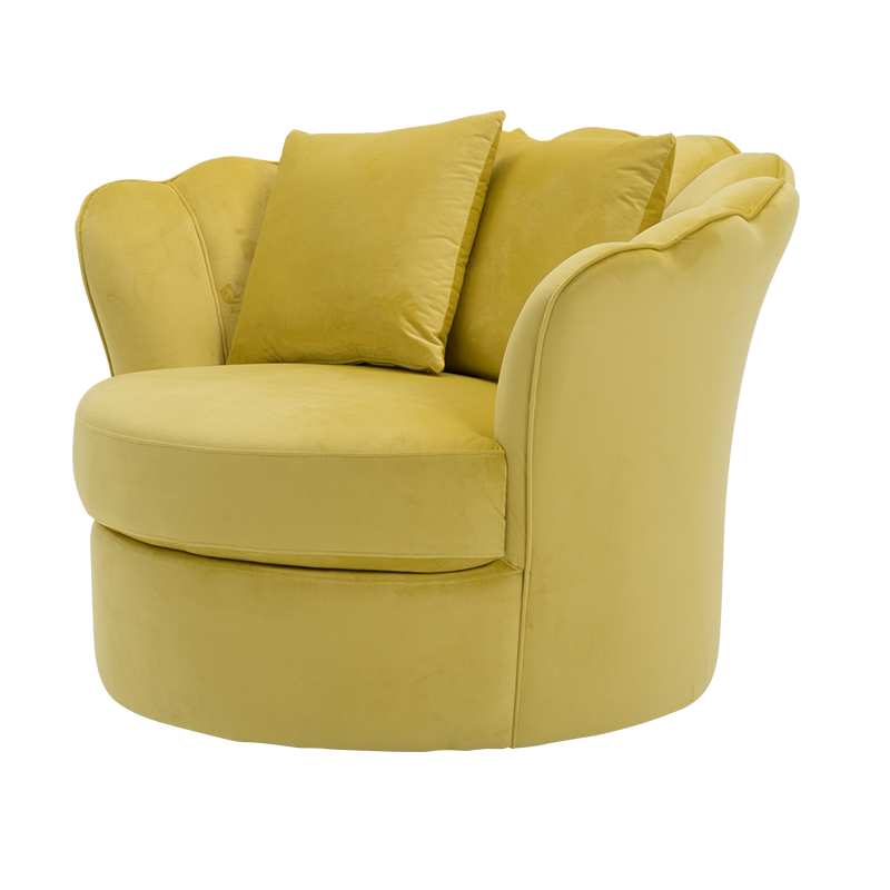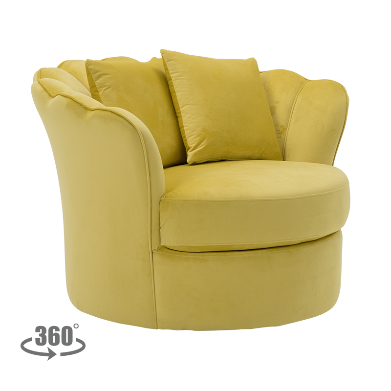 Тази светложълта въртяща се кресло е перфектното допълнение към всяка модерна и стилна дневна стая. Неговият наситен и топъл цвят ще внесе нотка на слънчева светлина и свежест във вашето пространство, създавайки уютна и приветлива атмосфера. Изработено от мека и издръжлива материя, това кресло гарантира комфорт и дълголетие, с лекота се вписва в различни интериорни стилове, като същевременно добавя нотка елегантност и изящество.
