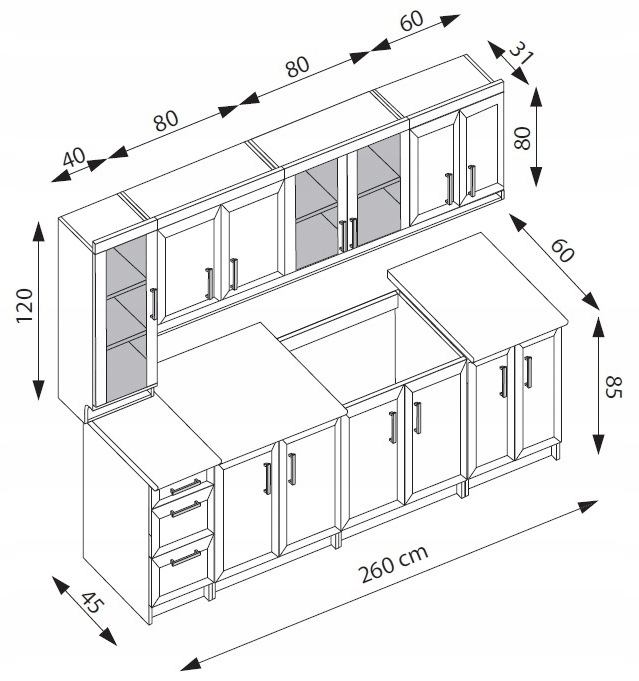 Кухня – Много елегантна кухня ще се хареса дори на най -взискателните клиенти. Това е много стилен комплект, който благодарение на красивите цветове за всеки интериор ще донесе много топлина, чар и вечна класика. Кухнята ще бъде чудесно решение за традиционните, но малки стаи.