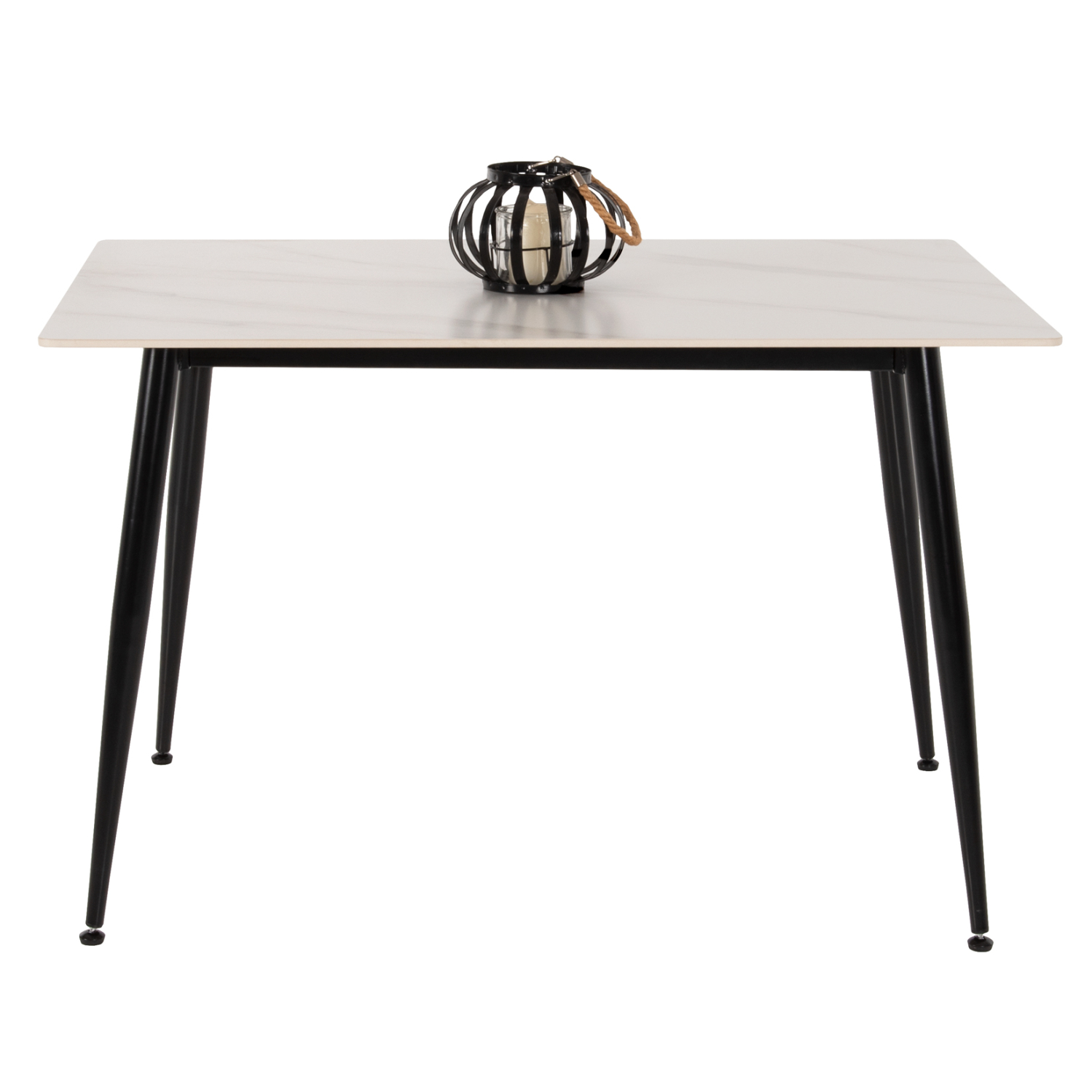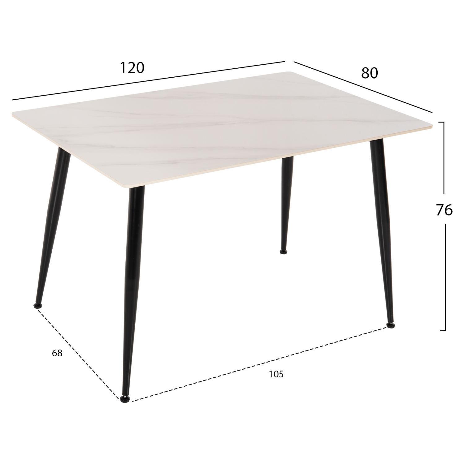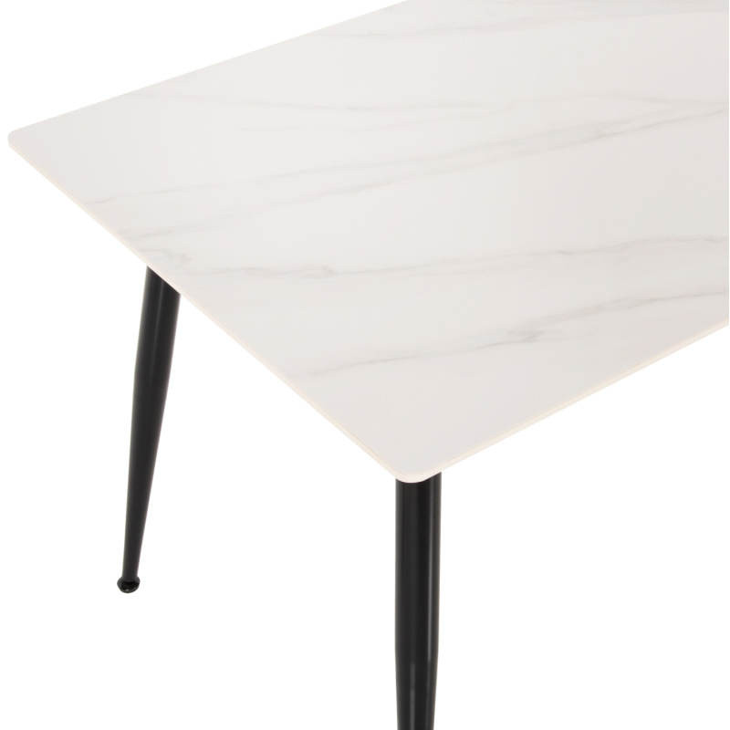 Минималистичният дизайн на масата се съчетава чудесно със съвременни и класически интериори. Този мебелен артикул придава усещане за лукс и висока класа, без да компрометира функционалността. Изящните метални крака, със своето елегантно черно покритие, добавят баланс и стабилност, допринасяйки за цялостния визуален ефект на изделието.