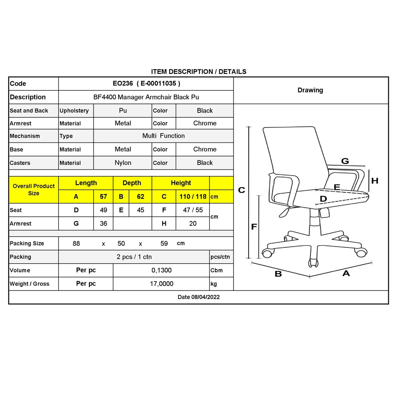 Този офис стол е идеалното решение за всеки, който търси стабилен и елегантен стол за своя работен прочитан или домашен офис. Усъвършенствайте вашето работно пространство и подобрете ефективността си с този изискан и функционален стол. Предлага се на достъпна цена, което го прави чудесна инвестиция за вашето здраве и продуктивност. Спечелете стил и комфорт на работното си място с този впечатляващ офис стол.
