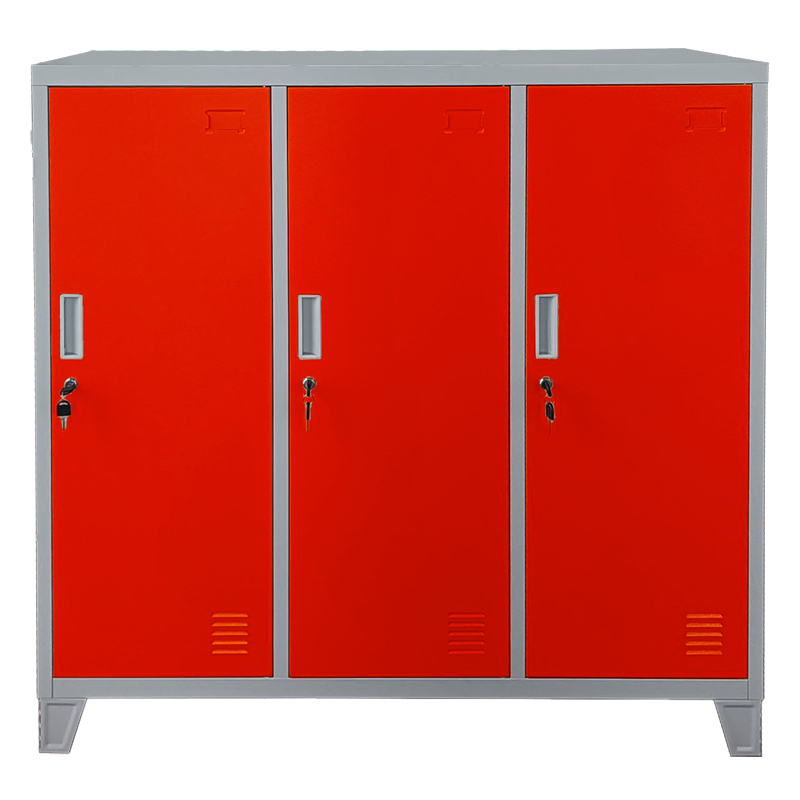 Металният шкаф разполага с 3 отделения, всяко от което има лост за закачалки и един регулируем рафт. Вратите са с индивидуални ключалки, вентилационни отвори за приток на въздух и място за поставяне на етикет. Моделът позволява монтаж към стена. Ако търсите метални шкафчета за детска градина или училище, това е чудесно решение, което се предлага в няколко цвята. Пълна информация за размерите и характеристиките на модела ще намерите в таблицата в таб/поле „Техническа информация“.