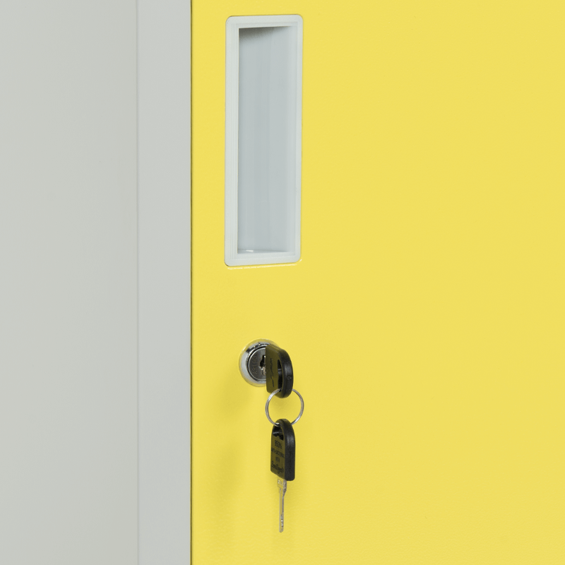 Този елегантен и стилен шкаф е идеалното решение за организиране на вашето пространство. Изработен от висококачествени материали, той предлага изключителна здравина и дълготрайност. Ярко жълтият цвят на шкафа придава свежест и енергия, правейки го привлекателна част от всяка стая, независимо дали става въпрос за офис, училище или дом.