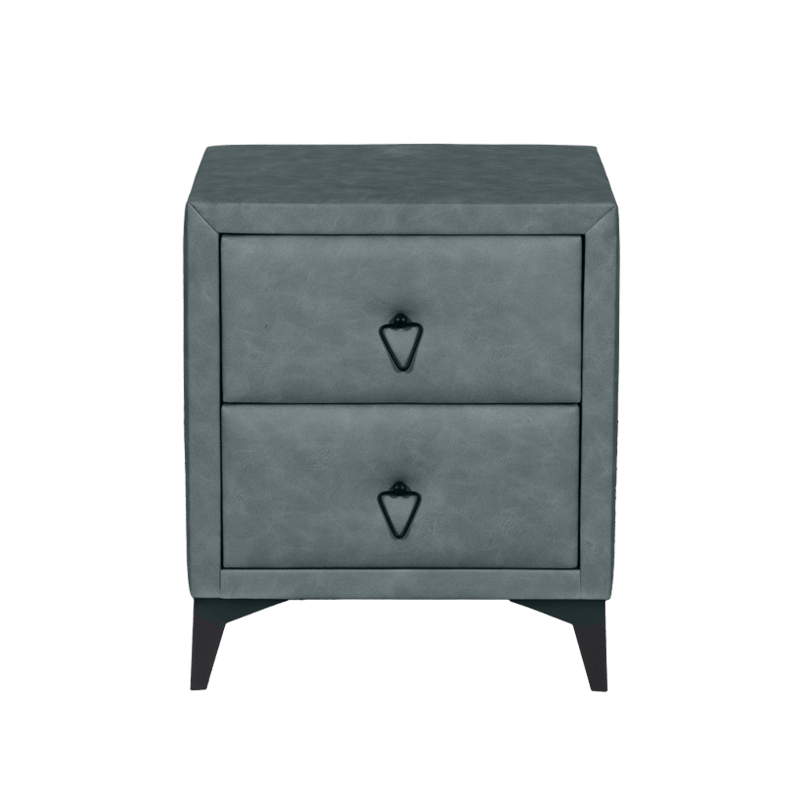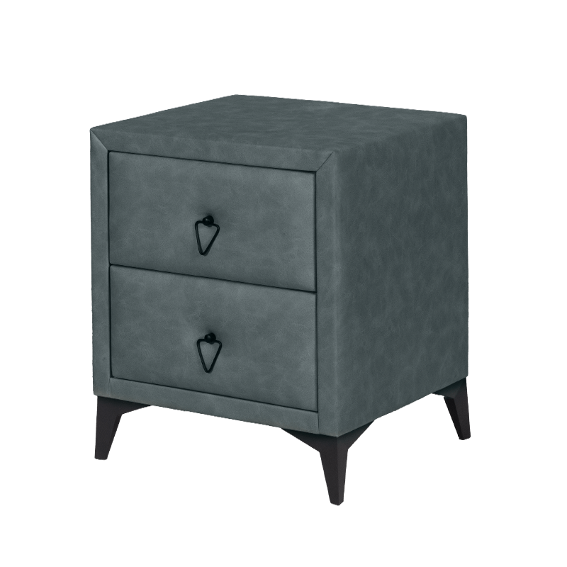 Изработено от висококачествени материали, това шкафче предлага сигурност и стабилност. Повърхността е покрита с издръжлив материал, който предлага меко и приятно на допир усещане, допълнено от изискан външен вид. Съчетавайки стил и практичност, шкафчето разполага с две удобно разположени чекмеджета, предоставящи необходимото пространство за съхранение на вашите лични вещи.