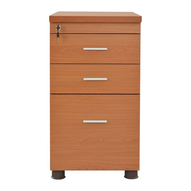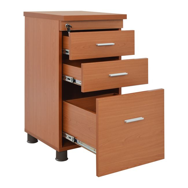 Моделът се отличава с компактните си размери, които идеално се вписват във всякакво офис пространство, предлагайки максимална организираност чрез своите три просторни чекмеджета. Горният шкаф е снабден със заключващ механизъм за по-голяма сигурност, осигурявайки дискретност за лични или важни документи.