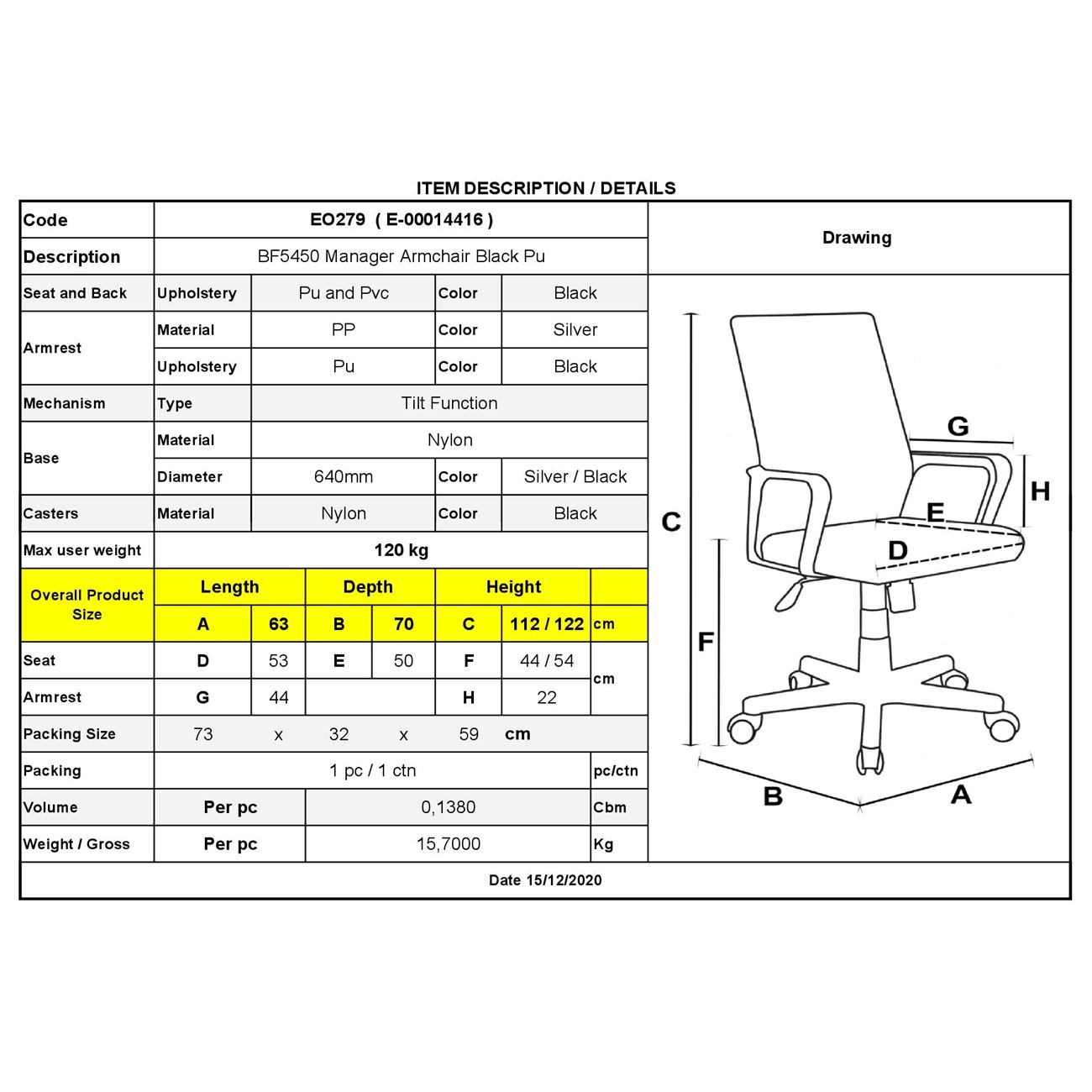 Тази стилна офис мебел съчетава модерна елегантност и функционалност, за да осигури комфорт и поддръжка по време на работа. Изработена от издръжлива еко кожа, която впечатлява с високо качество и изискан стил. Черният цвят на продукта добавя допълнителна нотка на елегантност и универсалност, позволявайки лесно интегриране в различни интериорни дизайни.