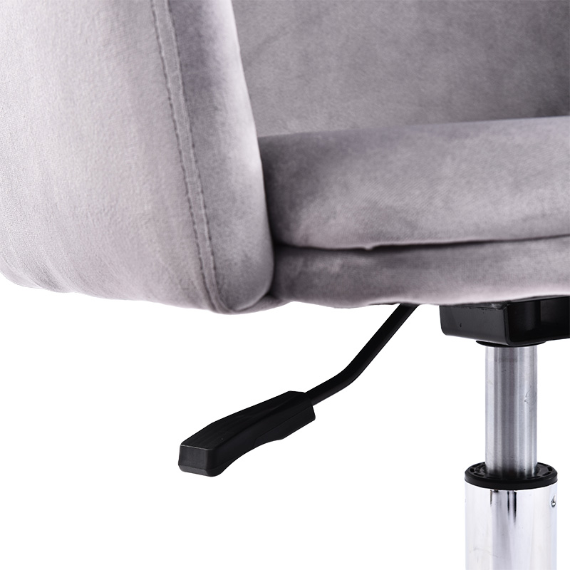 Основа от здрав хромиран метал предоставя стабилност и дълготрайност. Оборудван с регулируем механизъм, столът лесно се адаптира към индивидуалните предпочитания за височина. Пет колелца позволяват плавно и лесно движение по всякакви повърхности, без да нарушават настилките.