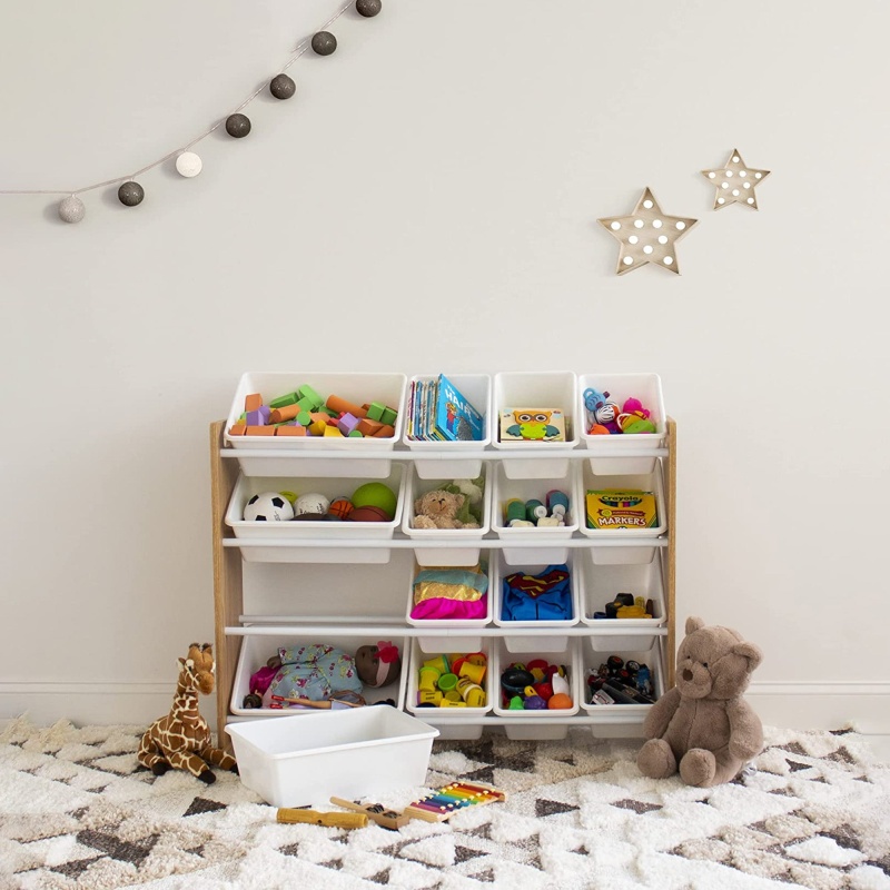 - Органайзерът за Детски Играчки GINGER HOME има 16 сменяеми пластмасови кутии за съхранение с различни размери – идеални за книги, играчки и принадлежности за рисуване.