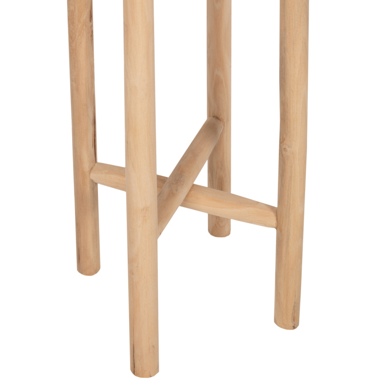 Съчетаваща класическа дървесна текстура с модерен дизайн, тази масичка е идеална за вашия хол, спалня или антре. Тиковото дърво, използвано за изработката, е известно със своята дълготрайност и устойчивост на износване, което гарантира, че масичката ще запази своя безупречен вид дълги години. Стилният кръгъл плот предоставя достатъчна повърхност за поставяне на декоративни елементи, растения, книги или напитки – всичко, което иска да добави индивидуалност и уют към вашия дом.