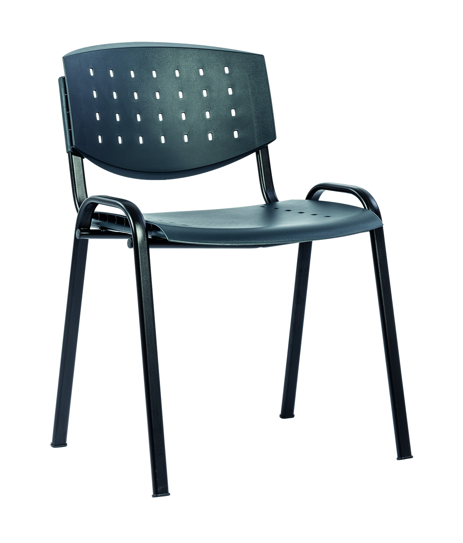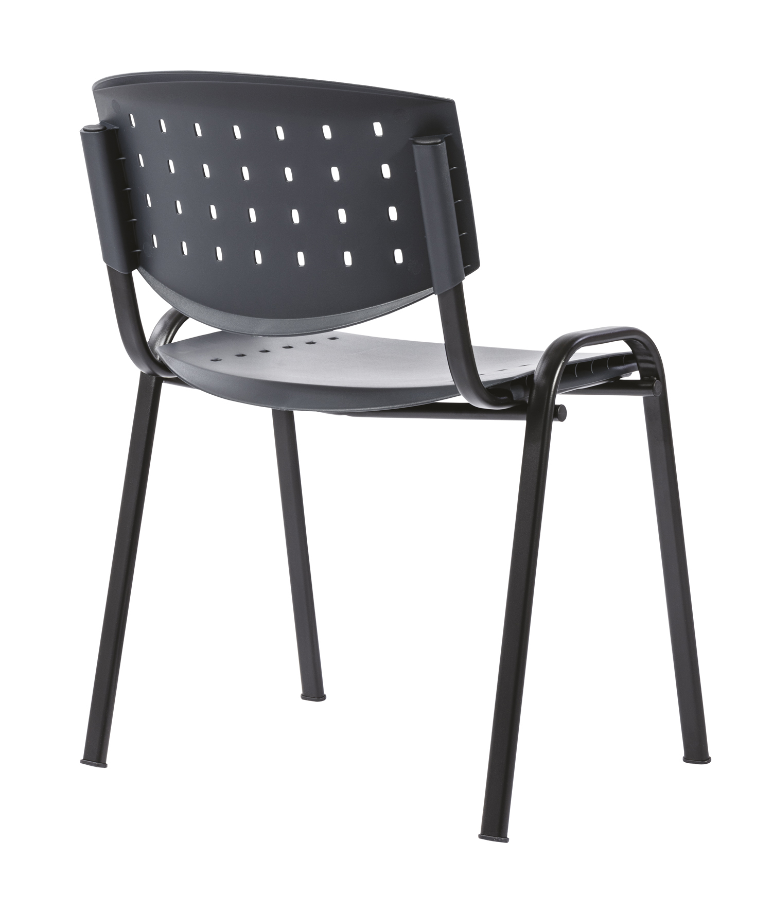 Посетителски стол с метална рамка, прахово боядисана в черен цвят. Овален профил 15×30 мм с дебелина 1.2 мм. Протектори на краката за защита на всички видове настилки. Седалка и облегалка от перфорирана пластмаса в цвят антрацит. Възможност за стифиране. Максимално натоварване до 130 кг. Тестван и сертифициран по стандарт EN16139:2013. Произведен в Европейски съюз. Гаранция 36 месеца.
