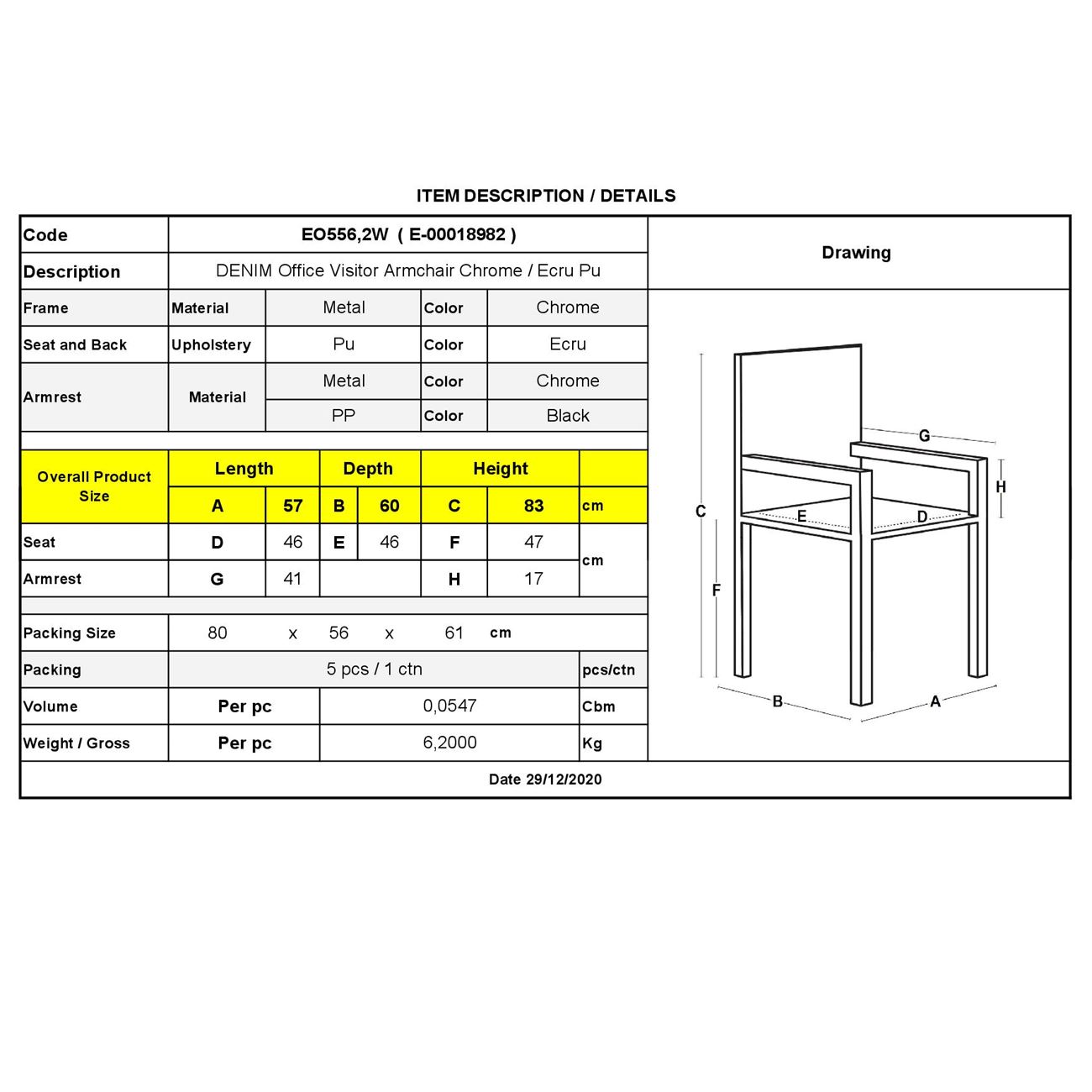 Изработен внимателно от висококачествени материали, столът е здрав и издръжлив, като същевременно предоставя усещане за лукс. Настилката му от полиуретанова кожа в екрю придава на стола елегантен външен вид и същевременно е лесна за поддръжка и почистване. Висококачествената хромирана рамка добавя изискан завършек и стабилност, устойчива на износване и ръжда.