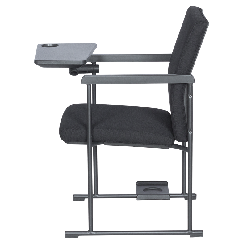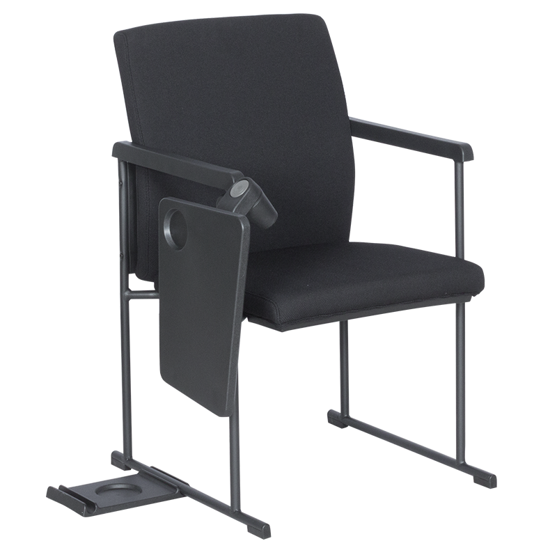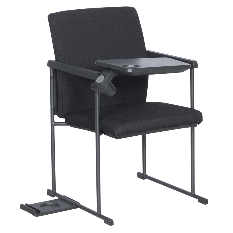 Този удобен посетителски стол с елегантна метална конструкция и приятно на допир покритие на седалката е идеалното решение за зали за семинари, конференции и други събития. Оснащен е с вградена подвижна маса, на която можете да водите бележки или да поставите лаптопа си. С лесен за използване бутон, масичката може да се прибира и заключва с лекота. На гърба на стола се намира практичен мрежест джоб, който предлага удобно съхранение за документи и лични вещи. Освен това, моделът предлага допълнителен конектор за захващане на земята с друг стол. Пълна информация за размерите и характеристиките може да бъде намерена в таблицата с техническа информация.
