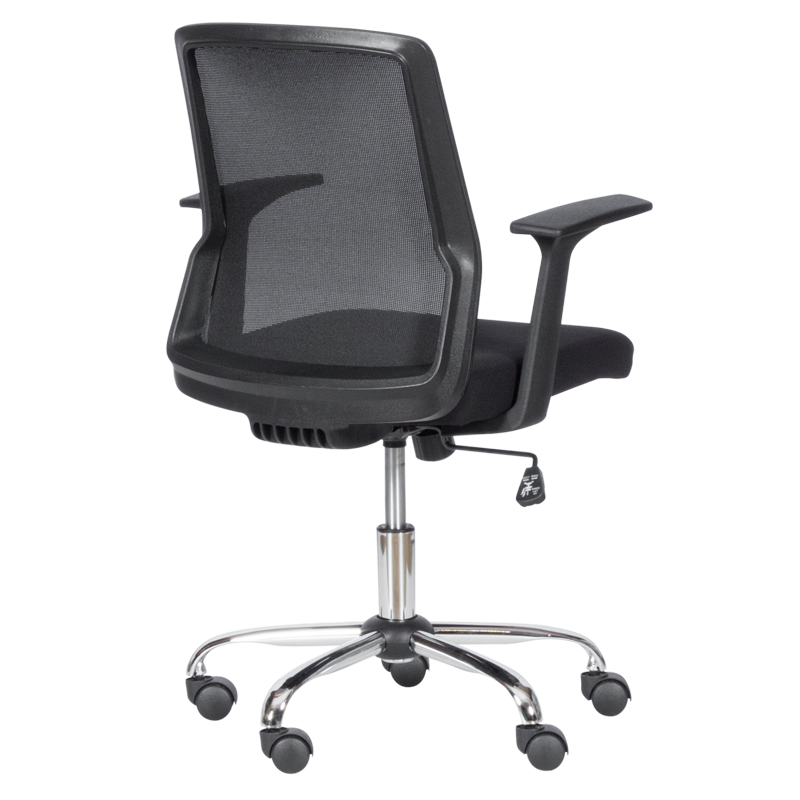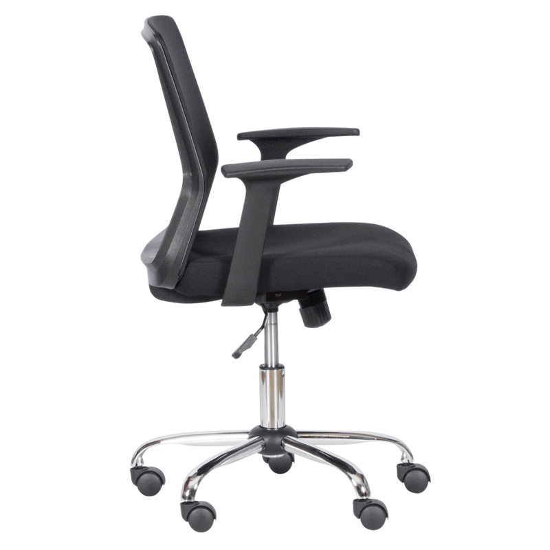Стабилната и здрава основа на стола е снабдена с пет колелца, които осигуряват лесна подвижност и голяма стабилност. Освен това, подлакътниците предлагат допълнителен комфорт и поддръжка за ръцете, което помага за намаляване на напрежението и умората през работния ден.