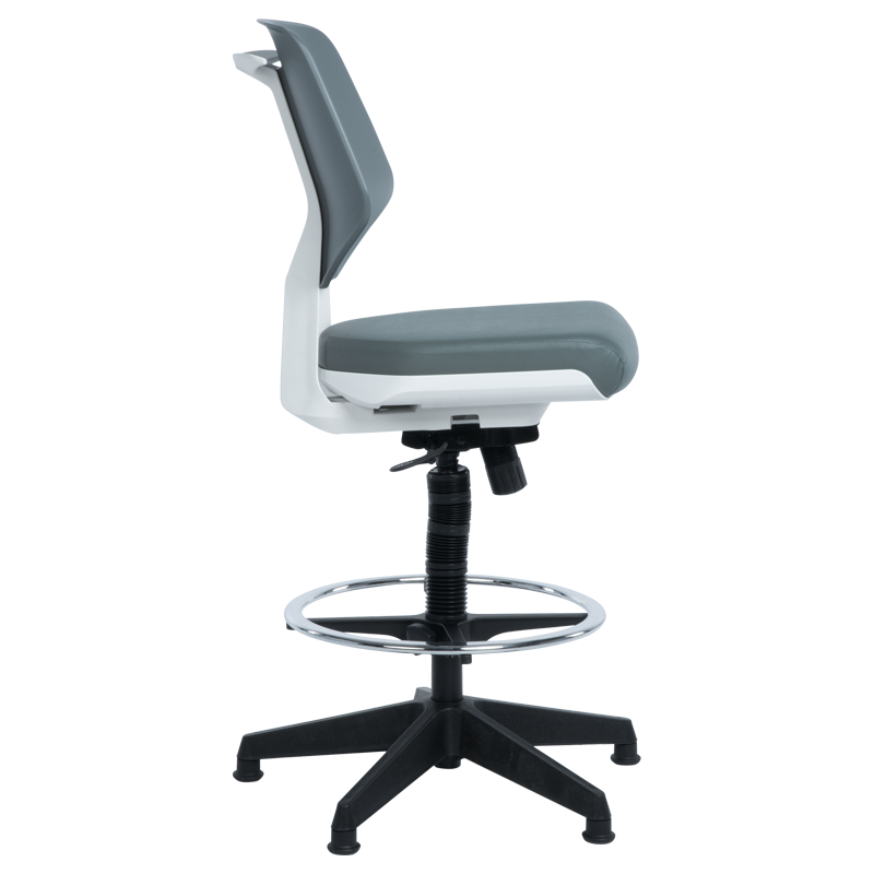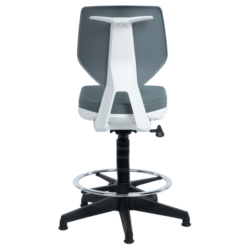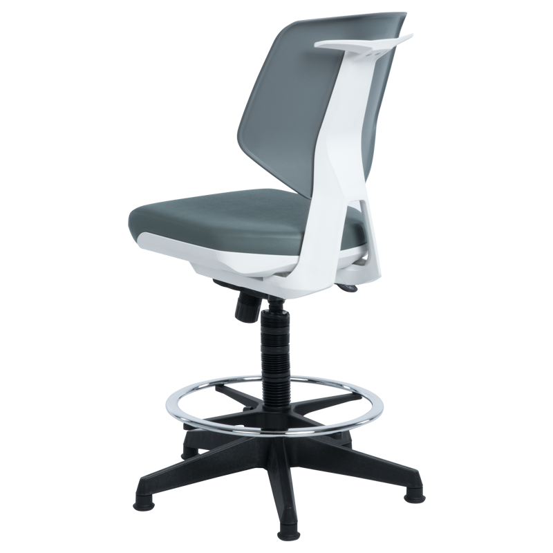 Основата от стабилен черен пластмасов материал и метален пръстен добавя допълнителна издръжливост и естетика. Това столче е перфектно за офис среда, учебна стая или дори домашен кабинет, като предлага комбинация от практичност и съвременен дизайн. Инвестицията в този продукт е гаранция за комфорт и ефективност в ежедневната работа.