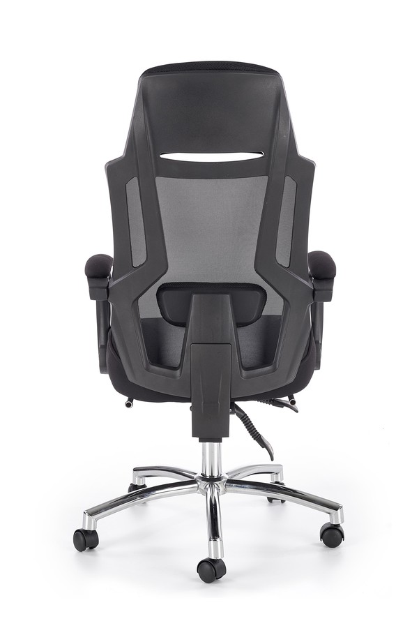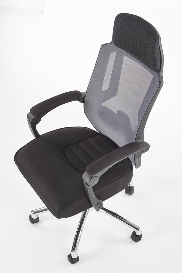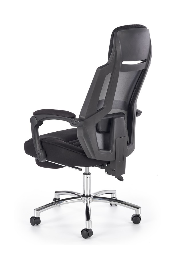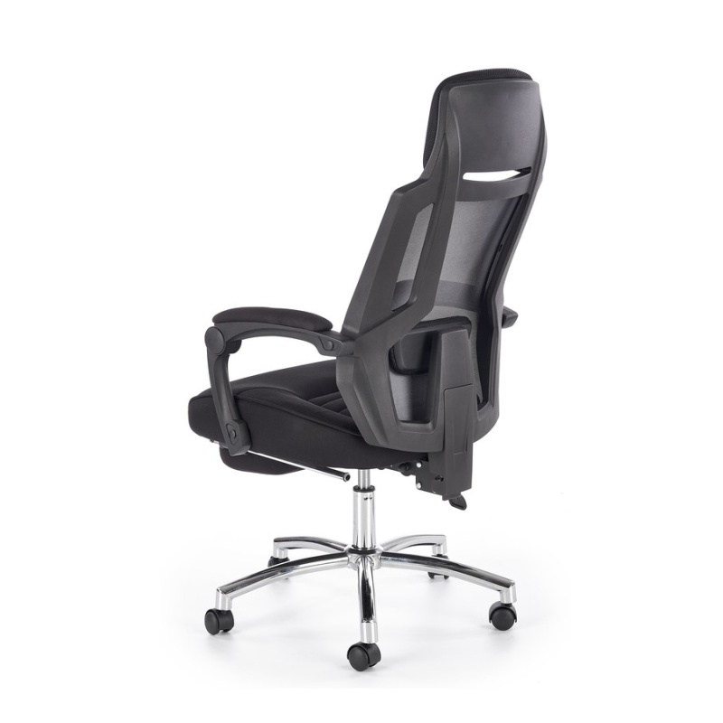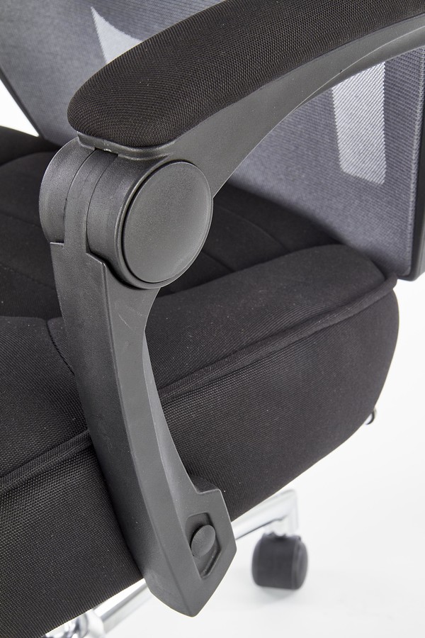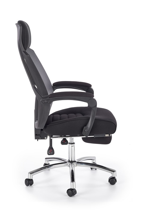 Президентски офис стол ще се хареса на всички хора, които прекарват много време на работа зад бюрото. Стола е оборудвано с много удобства, благодарение на които ще се провеждат много часове работа или обучение при удобни условия. Мебелите имат практични, меки подлакътници. Освен това е оборудван с прибираща се подложка за крака, което ви позволява да опънете краката си и да почивате в свободно положение. В допълнение, креслото има и вграден механизъм за наклони, което позволява безплатно регулиране на височината на седалката и ъгъла на облегалката. Президентският офис стол е позициониран върху база под формата на кръст на колела. Благодарение на тях можете лесно да се движите из стаята, без да се налага да ставате от стола. Продуктът е покрит с естетическа и функционална мембрана тъкан черна и сива мрежа.