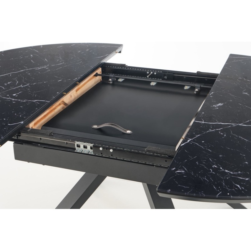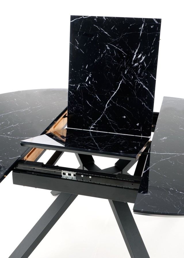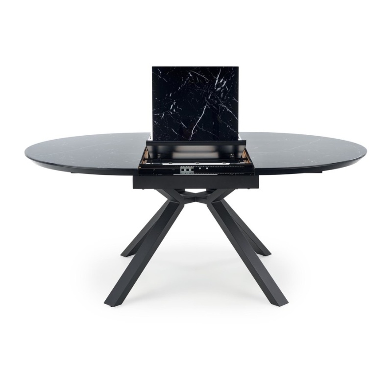Разтегателна кръгла маса 130 см – черен мрамор / черен