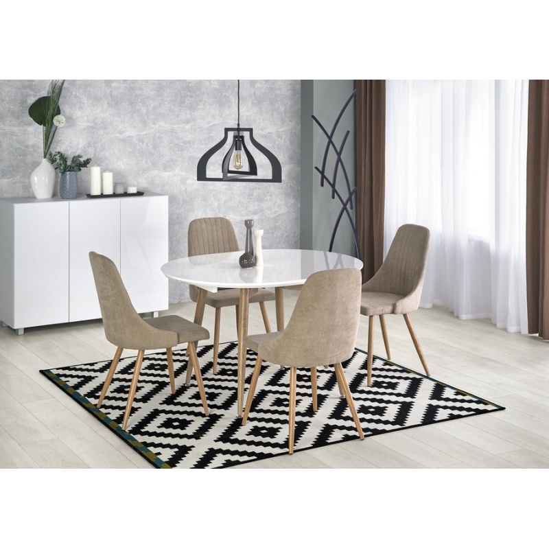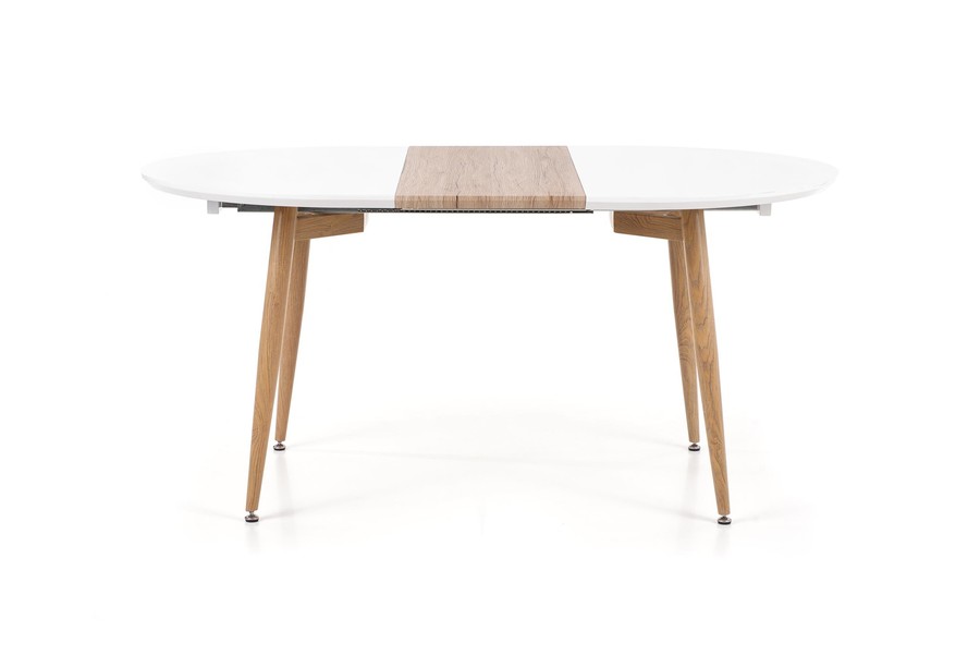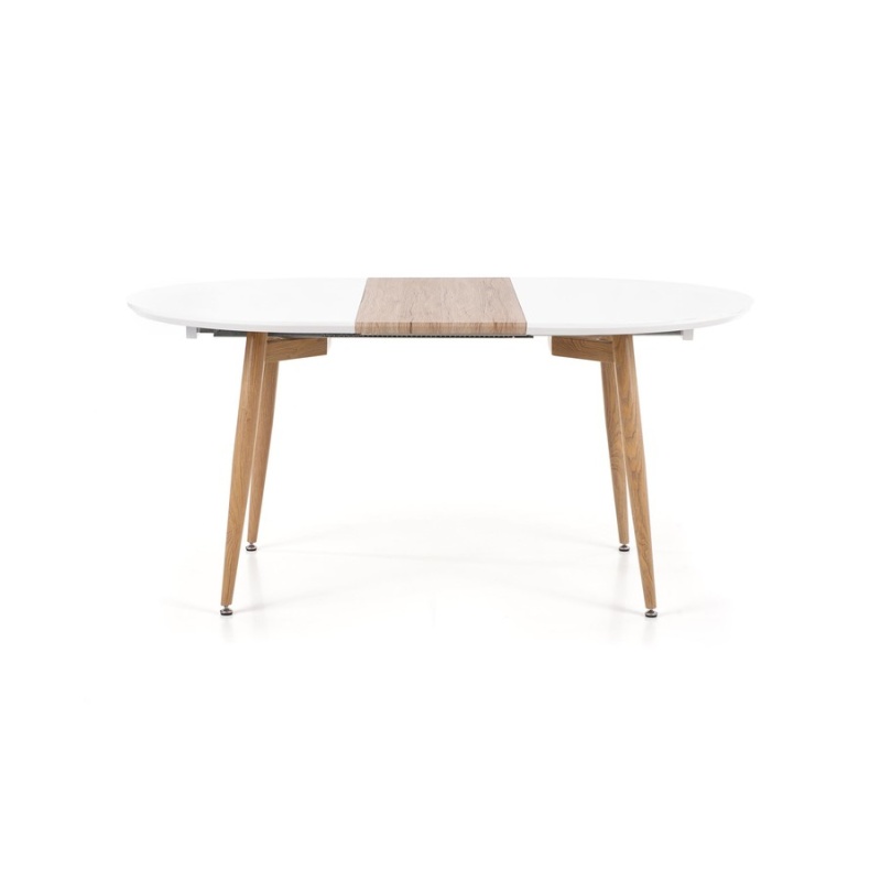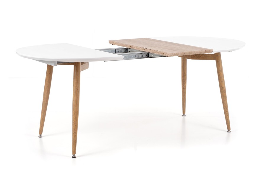 Трапезна маса – масата е комбинация от модерен дизайн с безвременна класика. Това е изключително стилно, елегантно, но просто и модерно парче мебели. Той работи чудесно както в дизайнерския интериор, който определено ще добави много стил и клас, както и тези малко по -класически, в които също ще бъде ефективно допълнение. Тази таблица се характеризира с много фин цвят, който лесно може да бъде интегриран в много аранжименти. Белият връх с крака, подобни на мед, изглежда много вкусен. Можете също така да изберете отгоре в цвят на дъб. Трапезната маса е сгъваема таблица. Работи както по време на ежедневието, така и по -големите семейни срещи. Изработен е от висококачествени материали. Това е трайна и много трайна мебел.