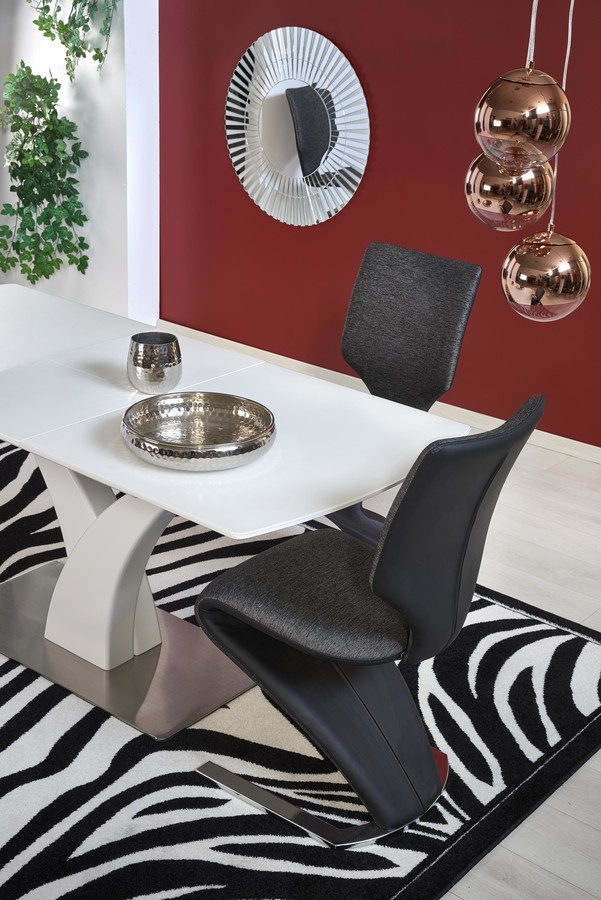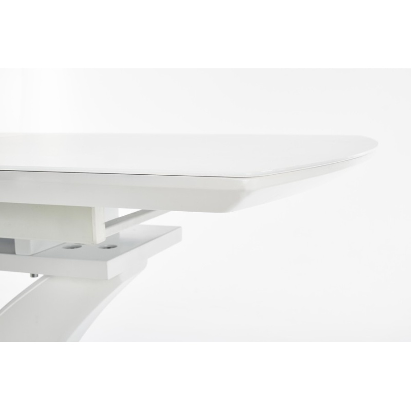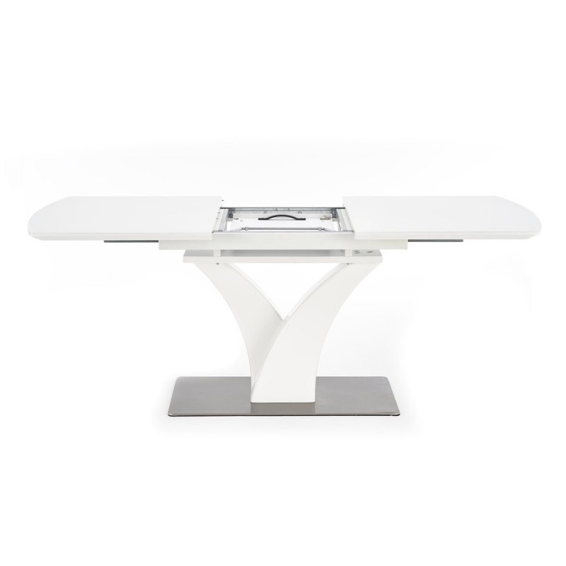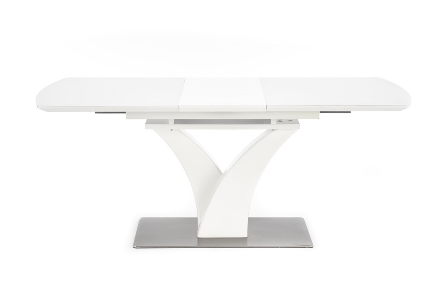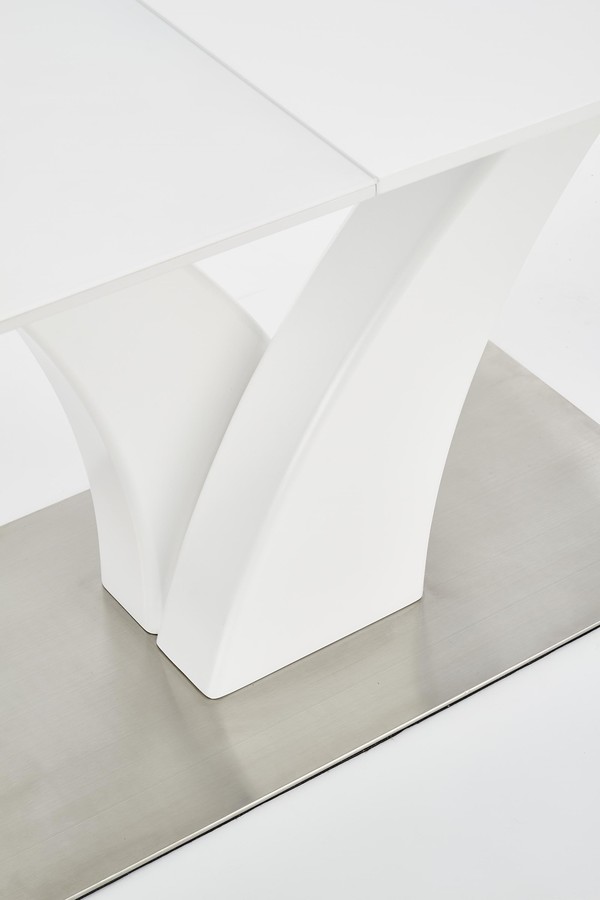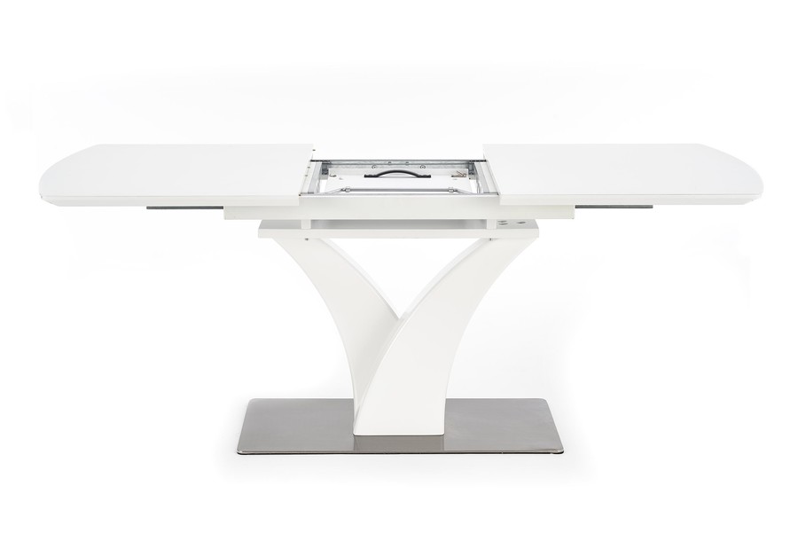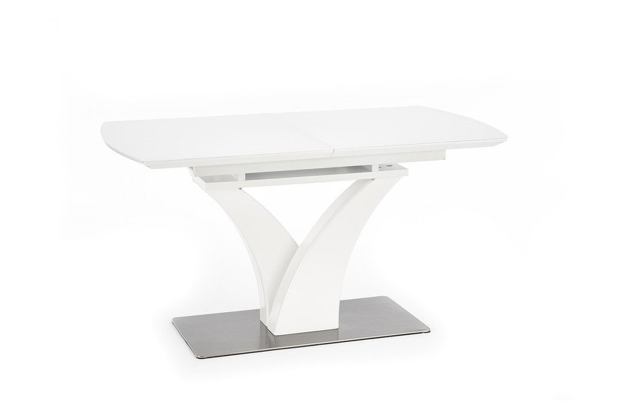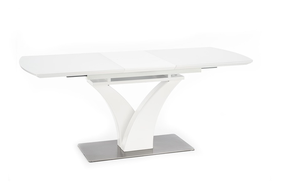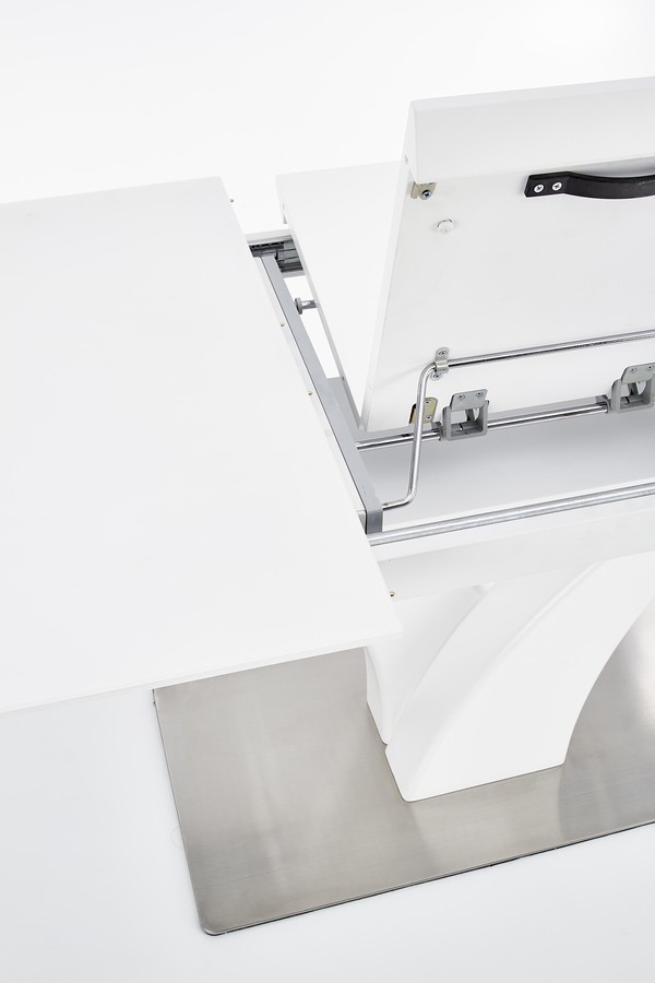 Трапезна маса – Масата е мебел, който ще бъде оценен от собствениците на модерна трапезария. Той се съхранява в бяло, което озарява интериора и създава впечатление за кокетно. Той дължи своя интересен вид на основата. От основата от неръждаема стомана се огъват две колони, които представляват опора за плота. Този се състои от ламинирана мебелна чиния, покрита със стъкло, което допълнително помага на светлината да отскочи и запали стаята. След разгръщане осем души могат да седнат до него, което е особено полезно при вземане на гости или различни семейни тържества.