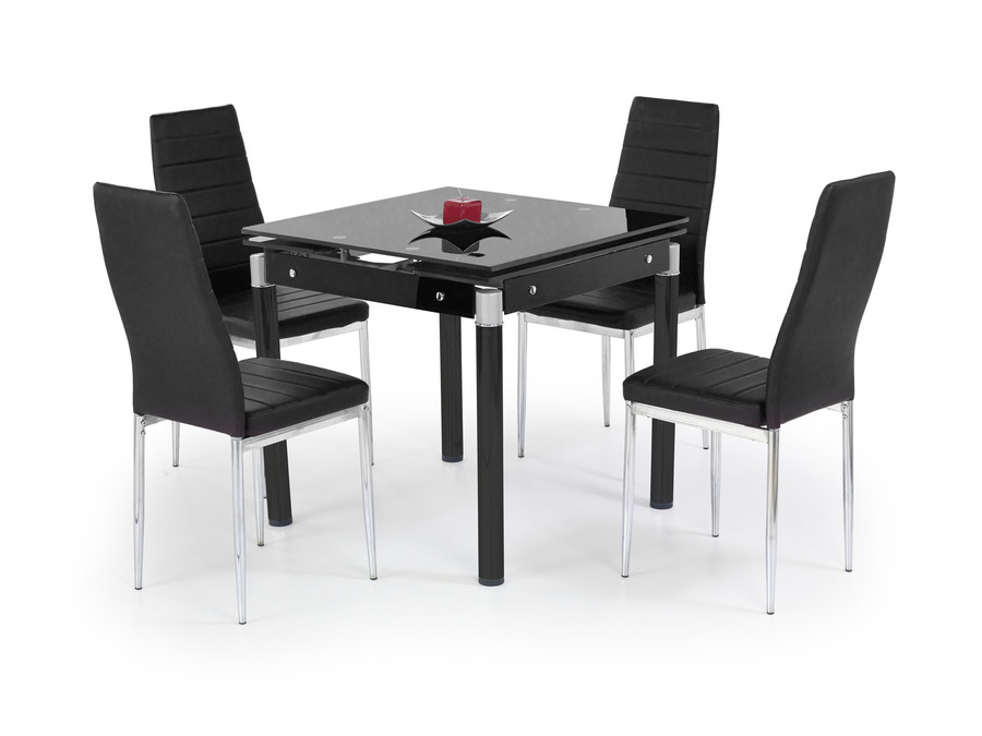 Трапезна маса – Изключително функционалната и стилна маса е изработена от много модерно стъкло и боядисана стомана, благодарение на която е много издръжлива и издръжлива мебел. Благодарение на простия и универсален стил, това парче мебели ще се съчетае с много различни интериорни аранжименти. Таблицата съответства на интериора на еднакво модерна, но и стилна.