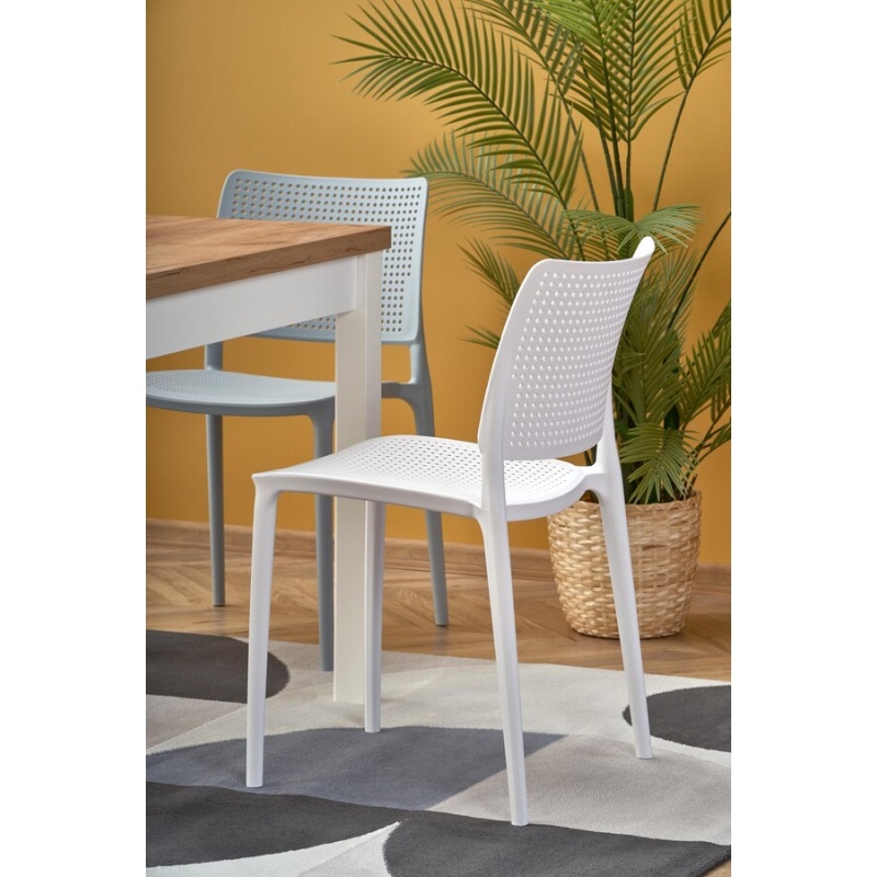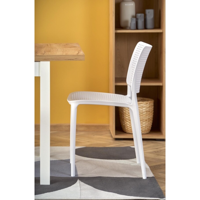 Квадратната маса за 4 души е перфектна комбинация от функционалност и естетика. Проектирана в скандинавски стил, тя се характеризира с известна универсалност, която позволява да се използва и в други аранжировки, особено в рустик и етно стил.Масата е оборудвана с плот в цвят крафт дъб, разгъващ се до правоъгълна форма.Материалът на плота е ламинирана плоскост, която изглежда модерна и същевременно вечна.Основата на масата е изработена от МДФ и е запазена в еднороден бял нюанс, който идеално контрастира с топлия нюанс на плота.Четири бели, симетрични крака и рамка в същия нюанс създават кохерентен вид, добавяйки лекота към цялата конструкция.Този 4 -масата за сядане, въпреки семплата си форма, е отличителен декоративен елемент, който със сигурност ще придаде характер на почти всяко помещение.заслужава вниманието на всеки, който цени универсализма, безвремието и функционалността, и в същото време харесва скандинавския и рустик стил.