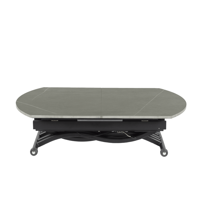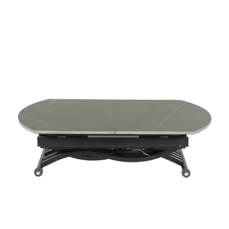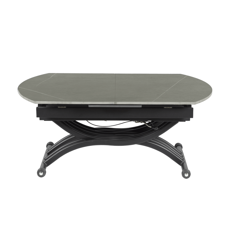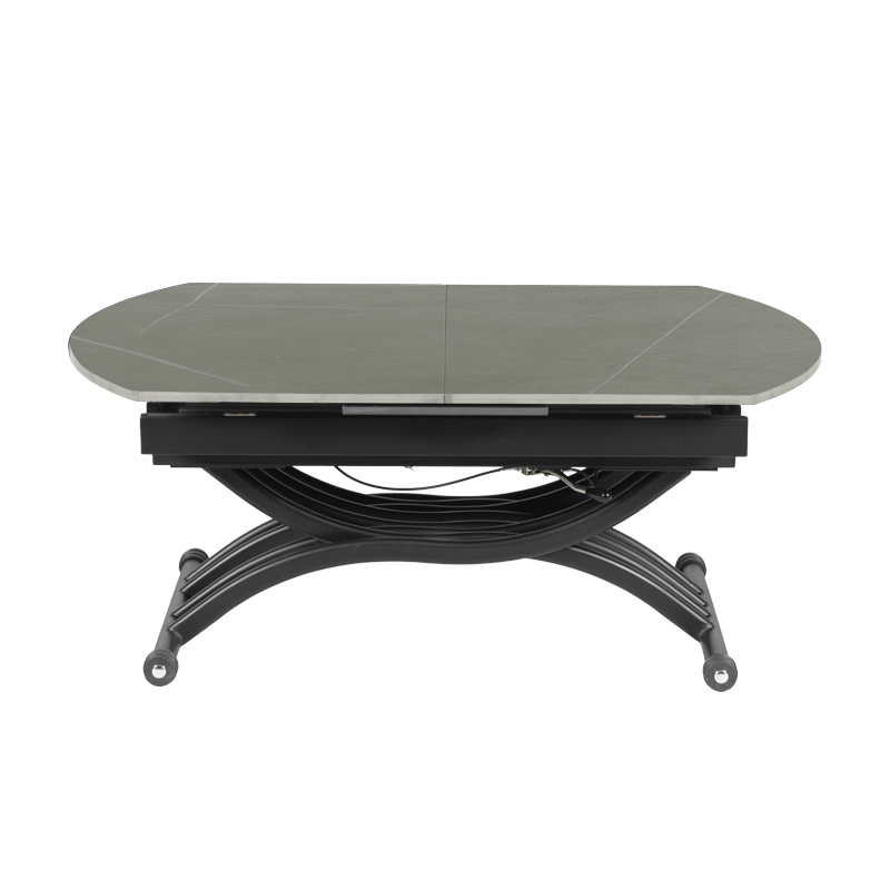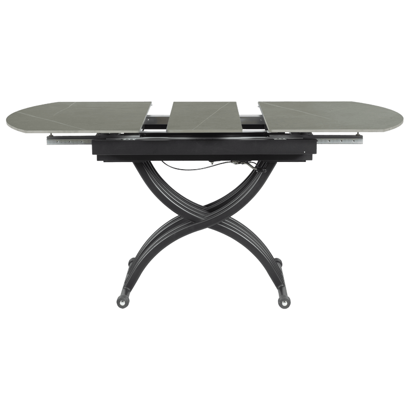 Масата е идеалният избор за тези, които търсят съчетание между функционалност и елегантен дизайн. Разполага с иновативен повдигащ механизъм, който позволява лесно регулиране на височината от 38 до 76 см, превръщайки я от холна в трапезна маса с едно движение. Разтегателният механизъм с модерна слайд система разширява плота от 120 до 150 см, като запазва широчината от 80 см. Керамичният плот осигурява изключителна здравина и стабилност, а съвременният му вид добавя усещане за лукс и уникален стил към вашия интериор. С тази маса лесно преминавате от сутрешното кафе към обяд или вечеря с приятели и семейството – всичко в един изискан и практичен продукт. Пълна информация за размерите и характеристиките на модела ще намерите в таблицата в таб/поле „Техническа информация“.