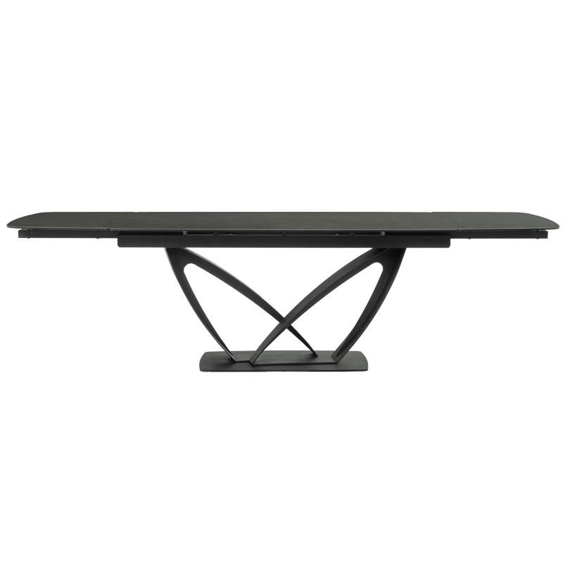 Елегантността и модерният дизайн се превъплъщават в тази разтегателна трапезна маса с фин и изискана форма. Идеална за всяко съвременно пространство, масата впечатлява с уникалния си стил и изисканост. Изработена от висококачествени материали, тя гарантира дълготрайност и устойчивост, което я прави перфектен избор за ежедневна употреба и специални поводи.