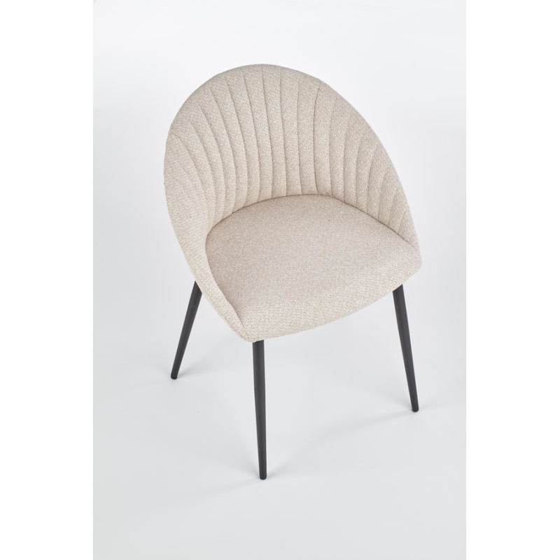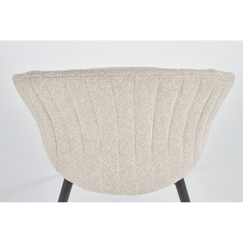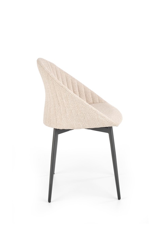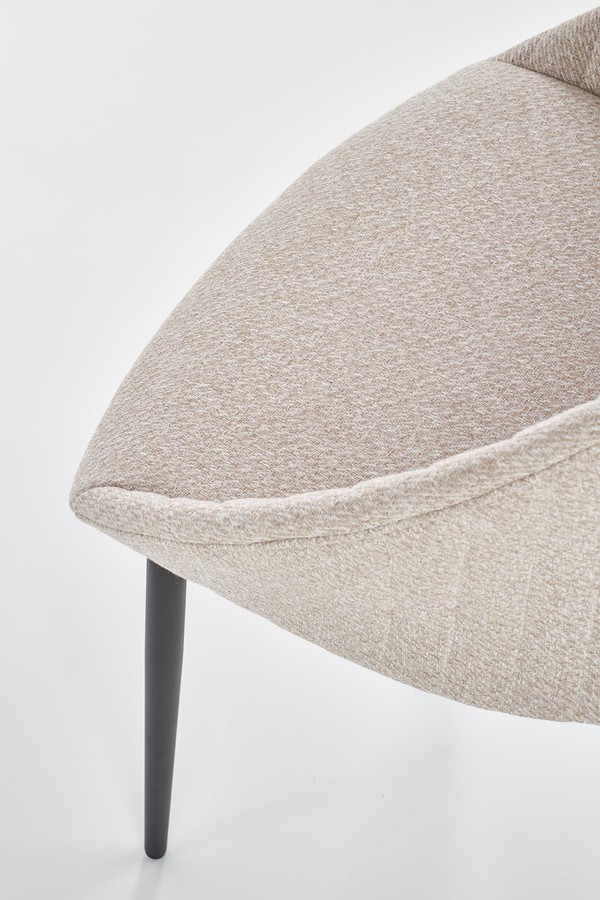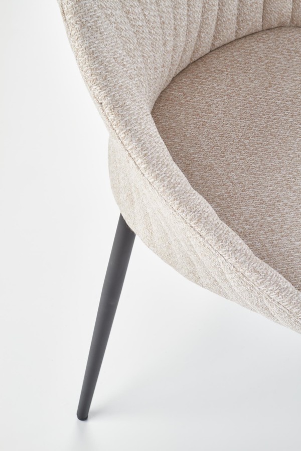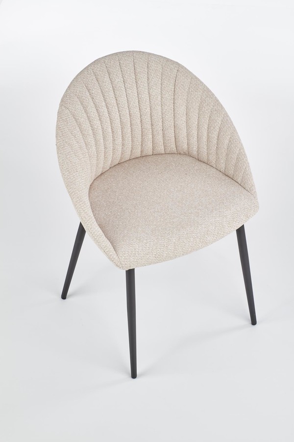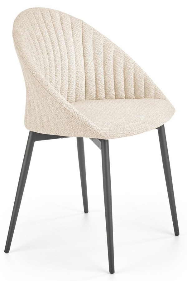 Стол – модерно парче мебели със заоблена основа без подлакътници, което благодарение на бежовия цвят ще се впише в стила на интериора с малка полезна зона – визуално озарява и ги разширява, а също така ще въведе глътка свежест . Леко профилираната облегалка е декорирана с атрактивен шев, който придава на мебелите оригинален стил. Моделът остава на прави крака, изработен от осейска от прах стомана в черно. Столът ще работи на масата в кухнята, трапезарията и дори на пейката в хола. Бежският стол ще допълва модерната, таванско помещение и индустриална естетика – това ще бъде универсален елемент на космическото оборудване.